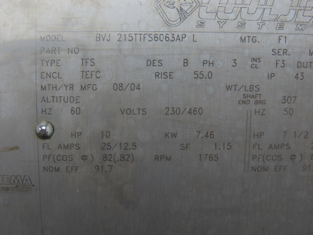 Cooljet Systems BVJ215TTFS6063APL Electric Motor 7.5HP 215T Frame 1765RPM 3PH