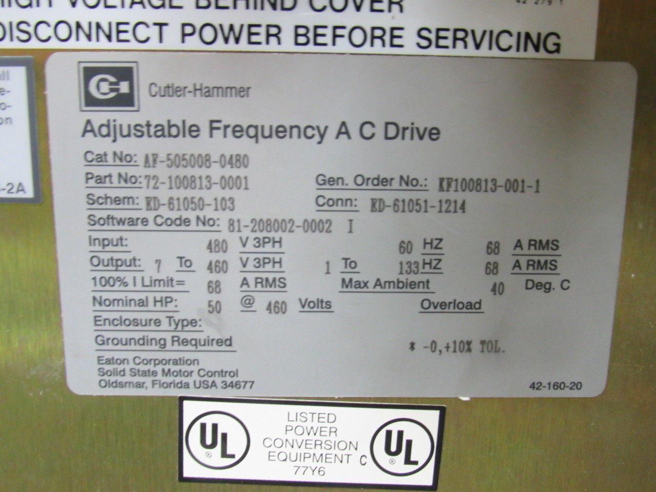Cutler Hammer Cat# AF-505008-0480 AF5000+ 50 Hp Adjustable Frequency AC Drive