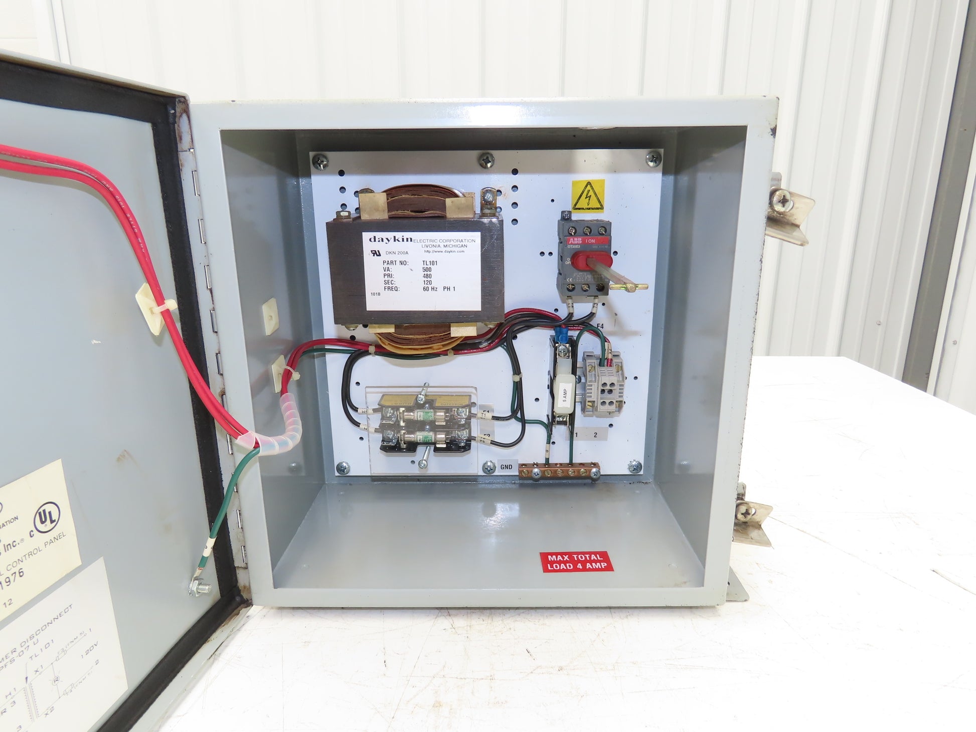 Daykin GPFS-07 U Stepdown Transformer Disconnect 500VA 1Ph HV 480V LV 120V *Read
