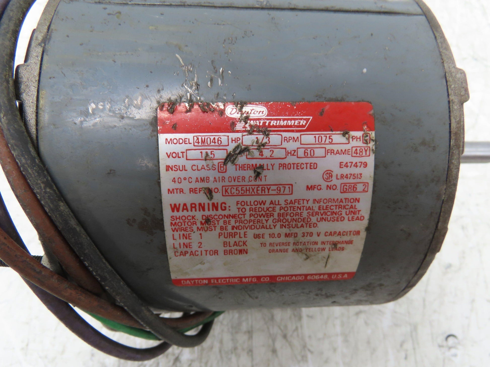 Dayton 4M046 HVAC Fan Motor 1/3Hp 1075 RPM 115V 1PH 48Y Frame 1/2" Shaft