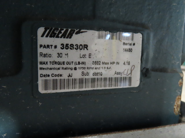 - Motor & Gearbox: 1Hp 230/460V 3PH 30:1 Gearbox.