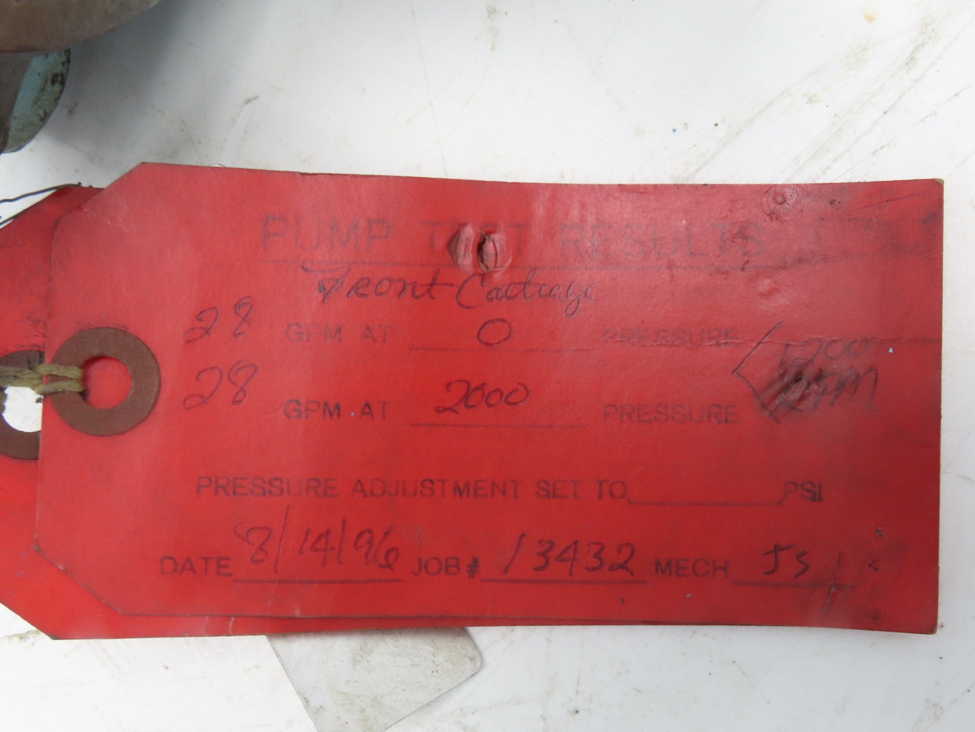 - Pump appears unused with test tags.
