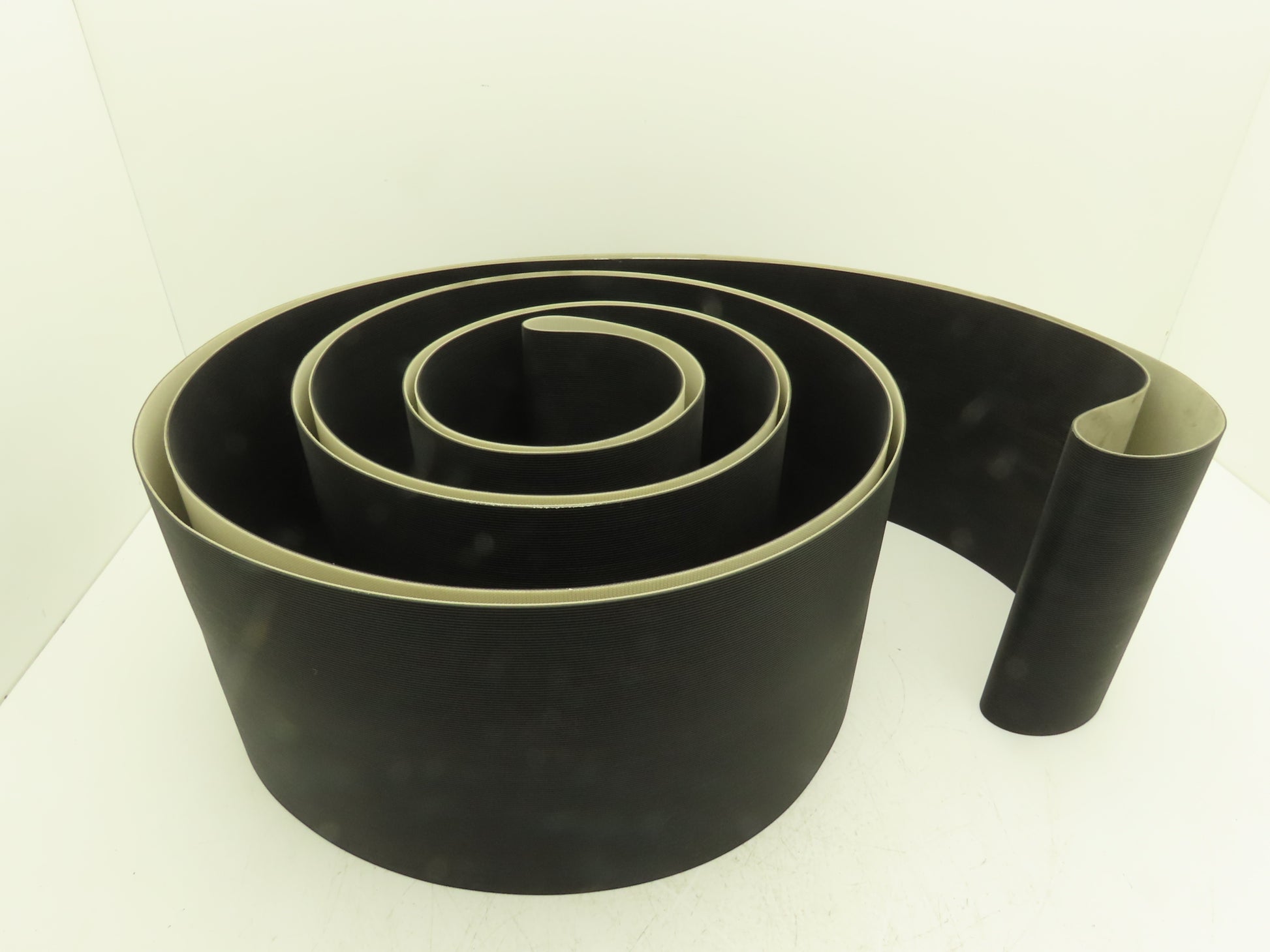 Dorner 10"W x 12' 10" Grooved Rubber Conveyor Belt Black Endless V-Belt Guide