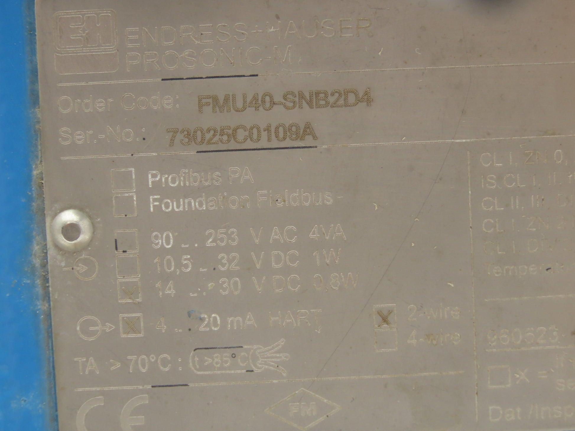 E+H Prosonic-M FMU40-SNB2D4 Ultrasonic Level Transmitter 14-30VDC 0.8W 16' Range