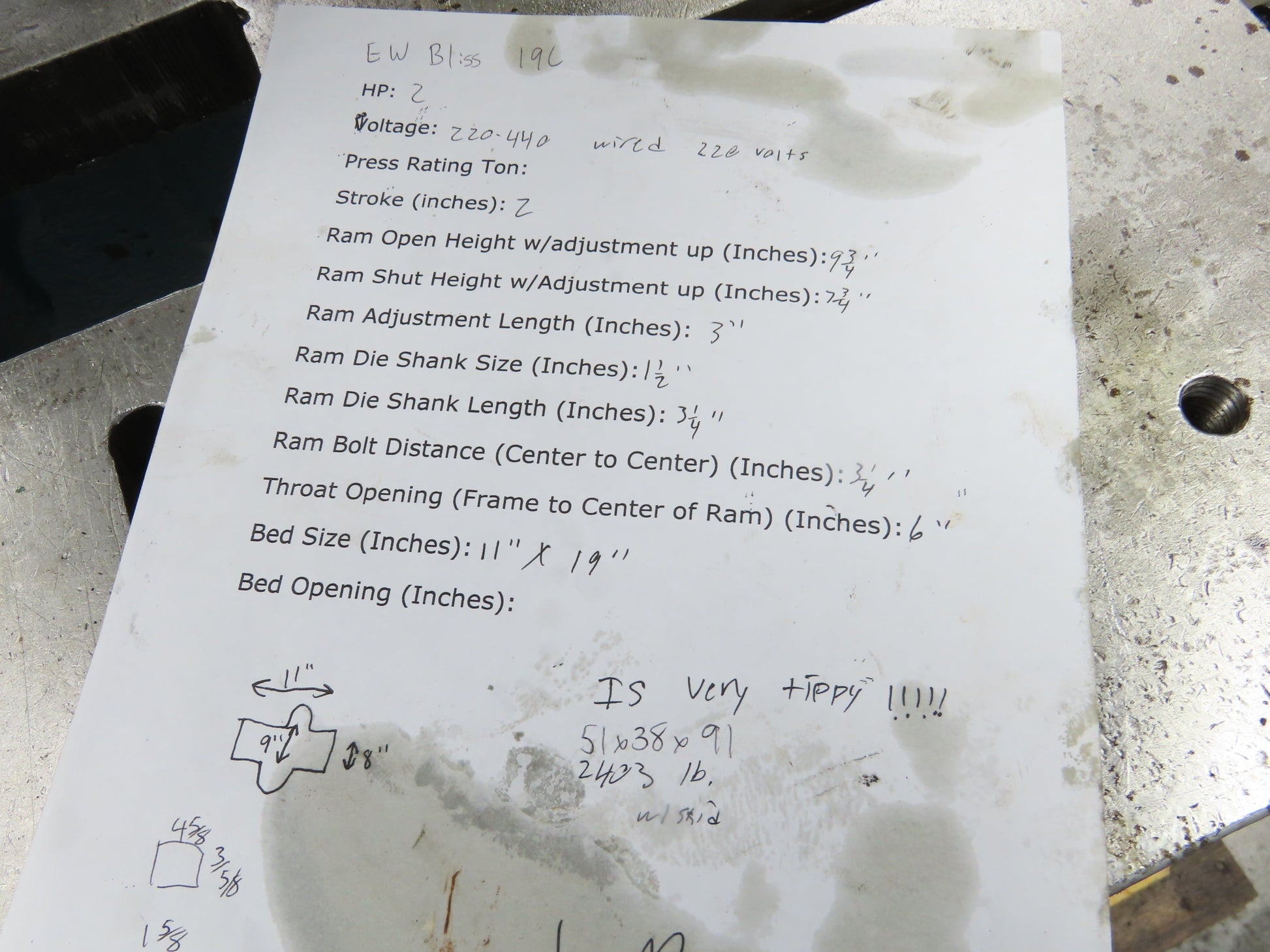 - Ram Die Shank Size (Inches): 1-1/2
