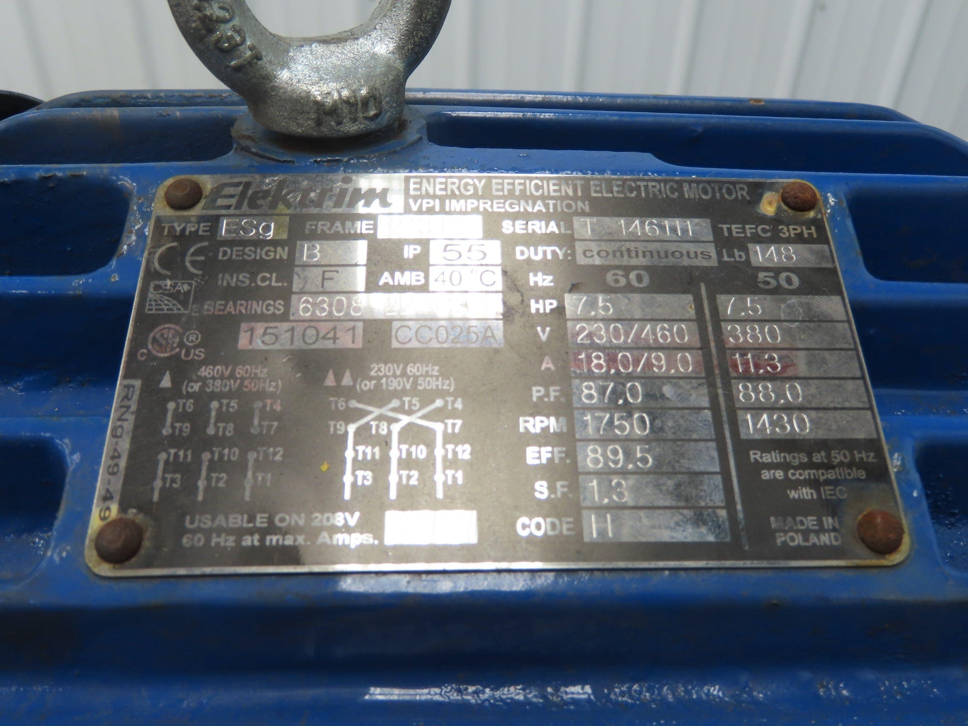 Elektrim 15041 CC025A AC Motor 7.5Hp 1750rpm 230/460v 3ph 213T TEFC