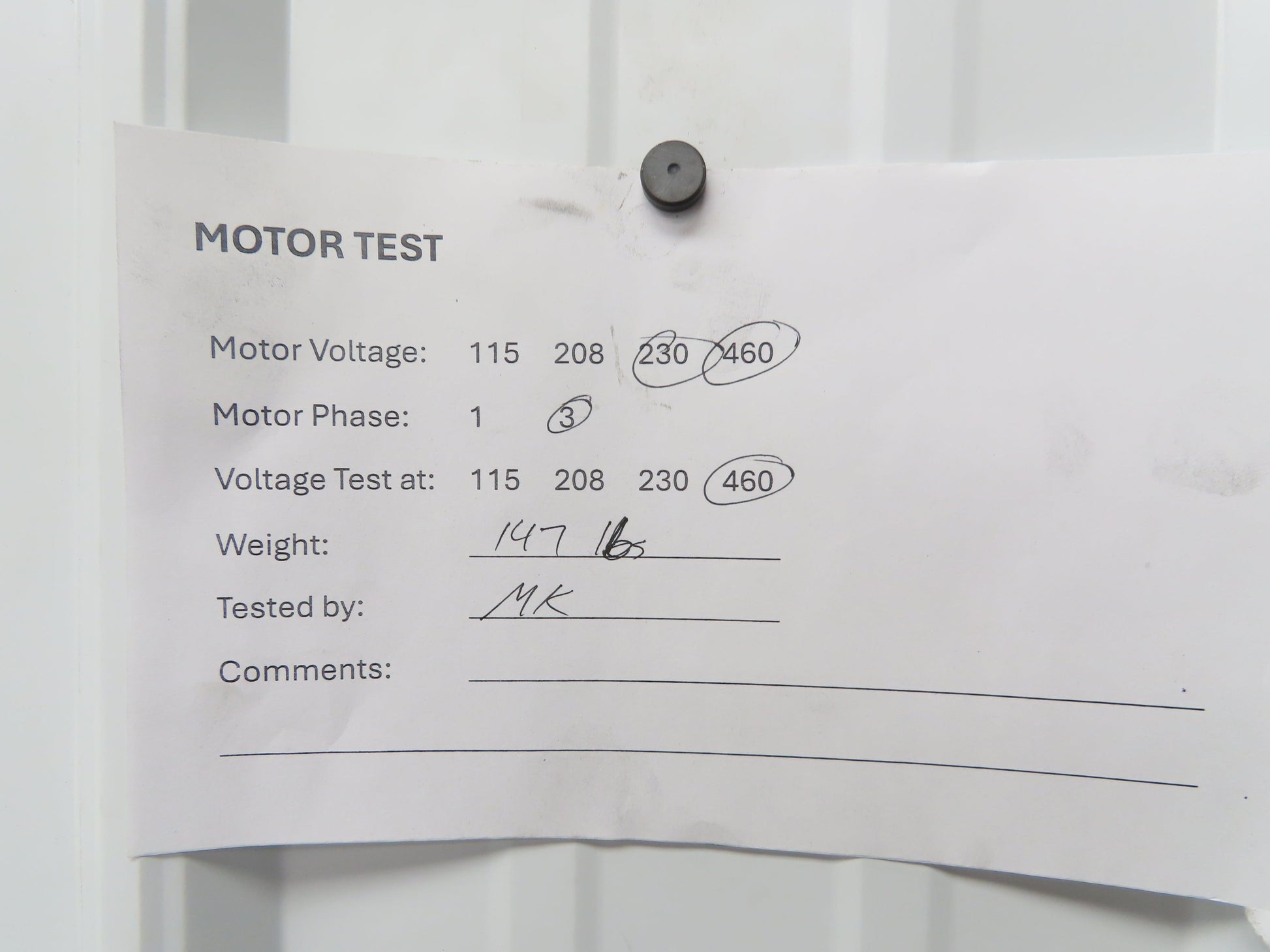 - Motor is in working condition, tested and wired for:: 460v