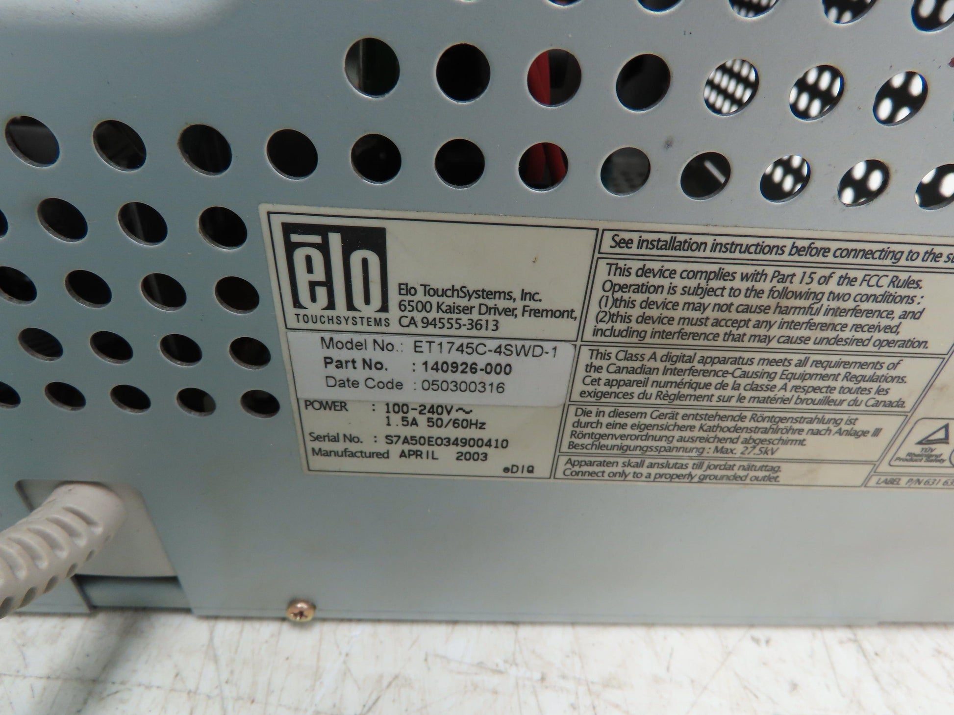 Elo ET1745C-4SWD-1 CRT LED 17" Touch Monitor Screen Rear Mount