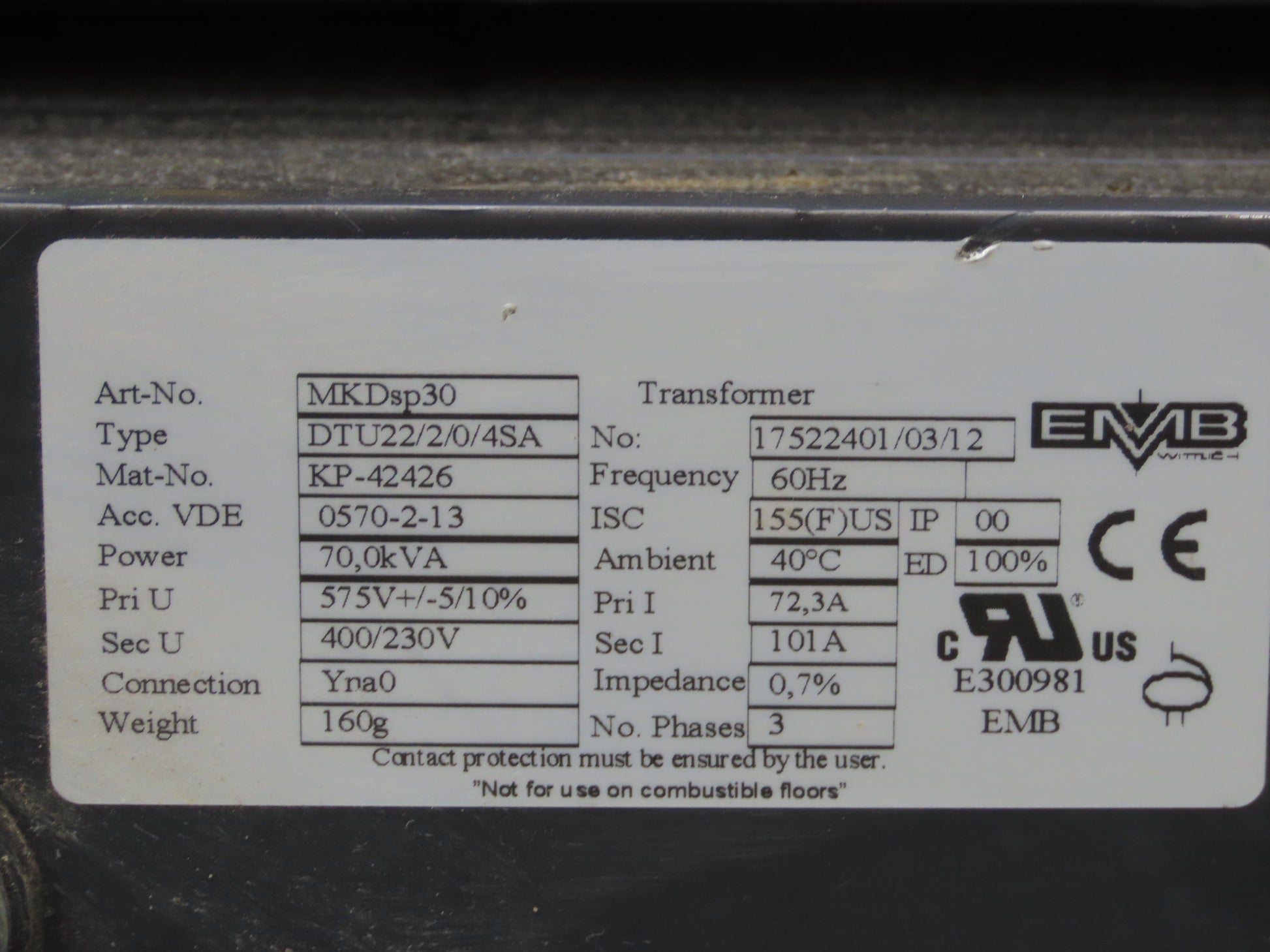 EMB Wittlich MKDsp30 3-Phase Auto Transformer 70 KVA 575V - 400/230V 3PH