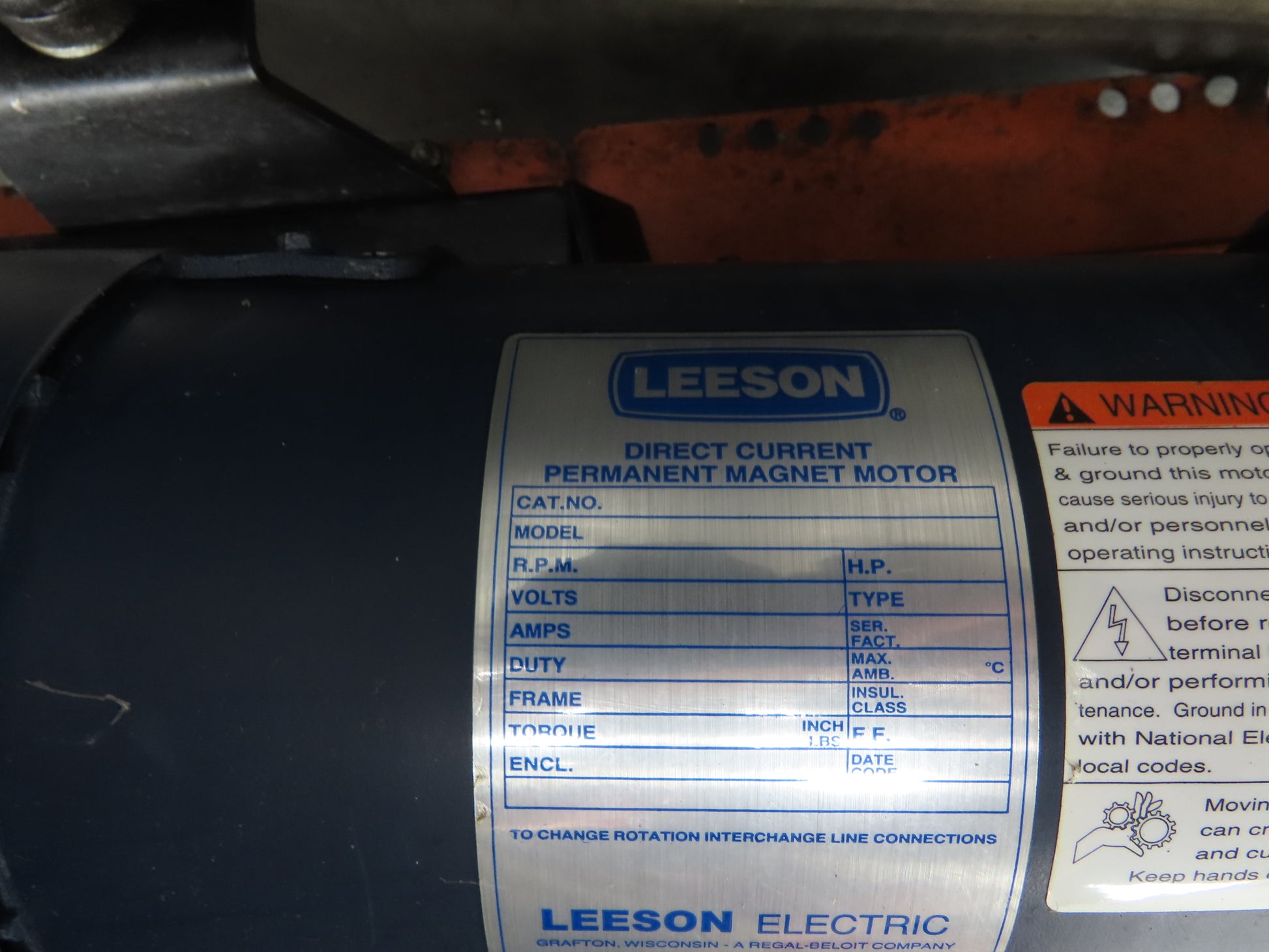 - Motor & Gearbox: DC Motor with variable speed drive, 115V.