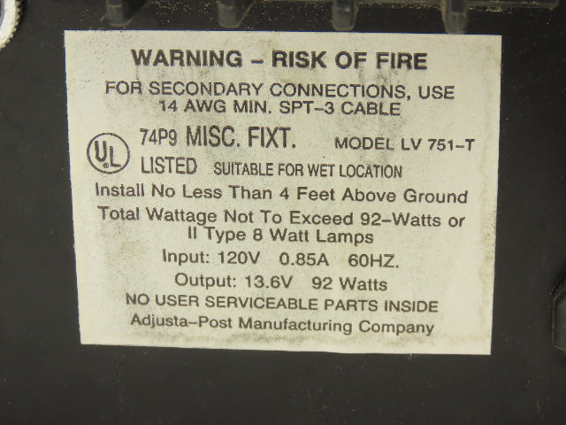 Evening Reflections LV 751-T Landscape Lighting LV Transformer Timer 13.6V 92W