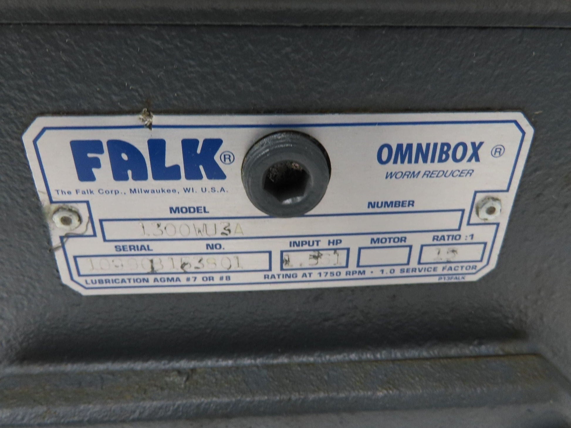 Falk Omnibox 1300WU3A Worm Gearbox 15:1 Reducer 116rpm 1.5Hp LH Output