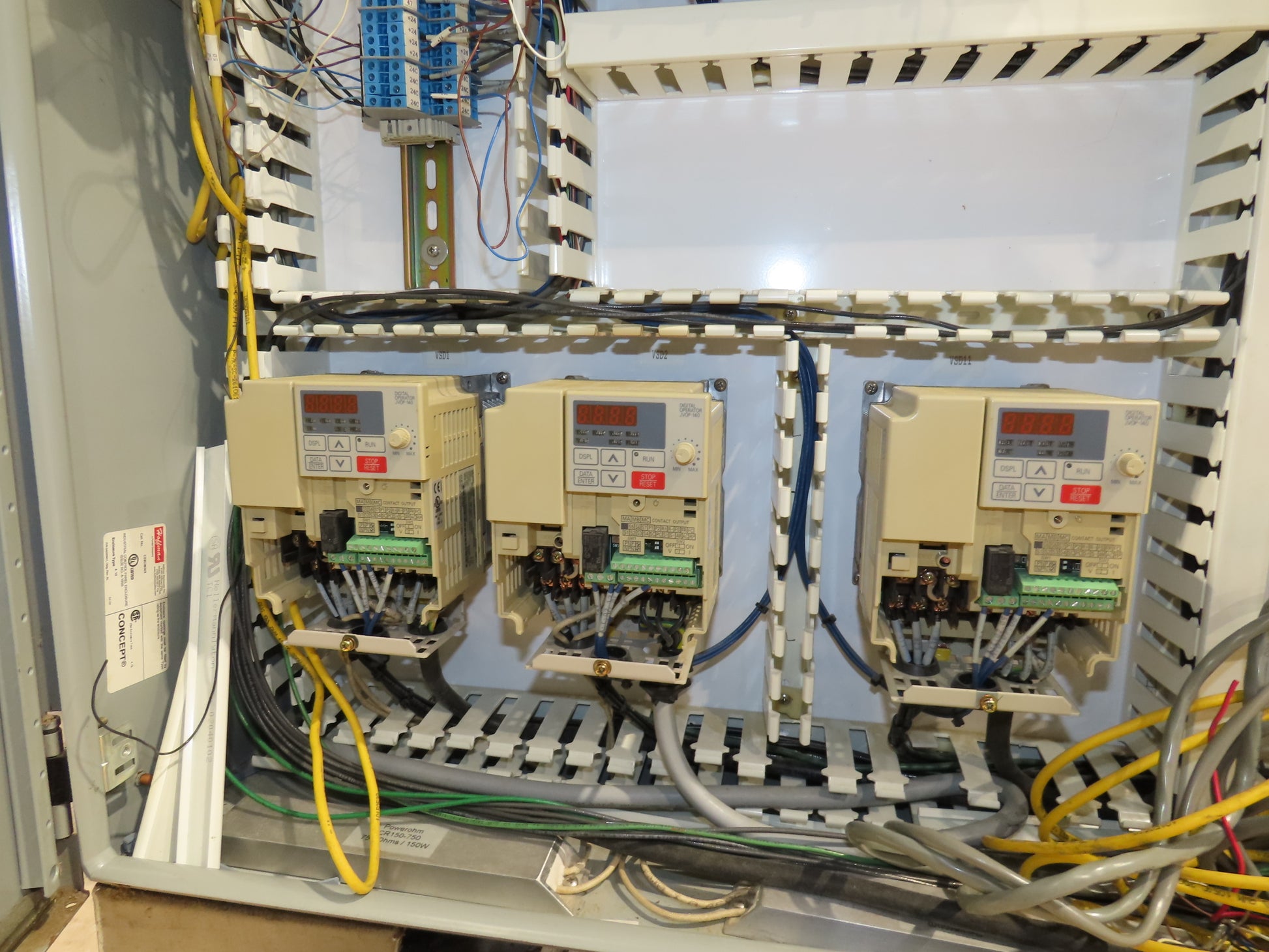 - 480V 3PH Control panel with Yaskawa VFD drives.