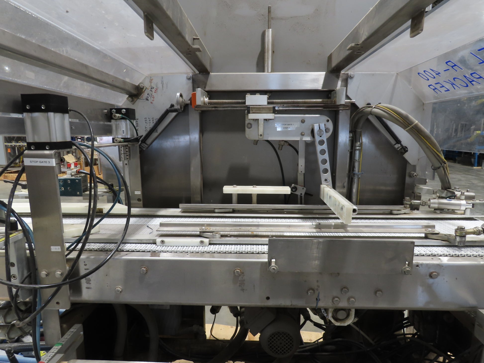 - Fallas R400 Case Packer Sorter with dual feed Conveyors.