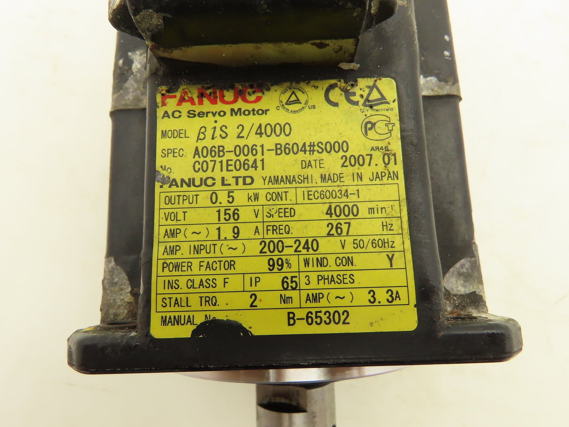 Fanuc A06B-0061-B604#S000 AC Servo Motor 0.5kw 156V 4000 RPM