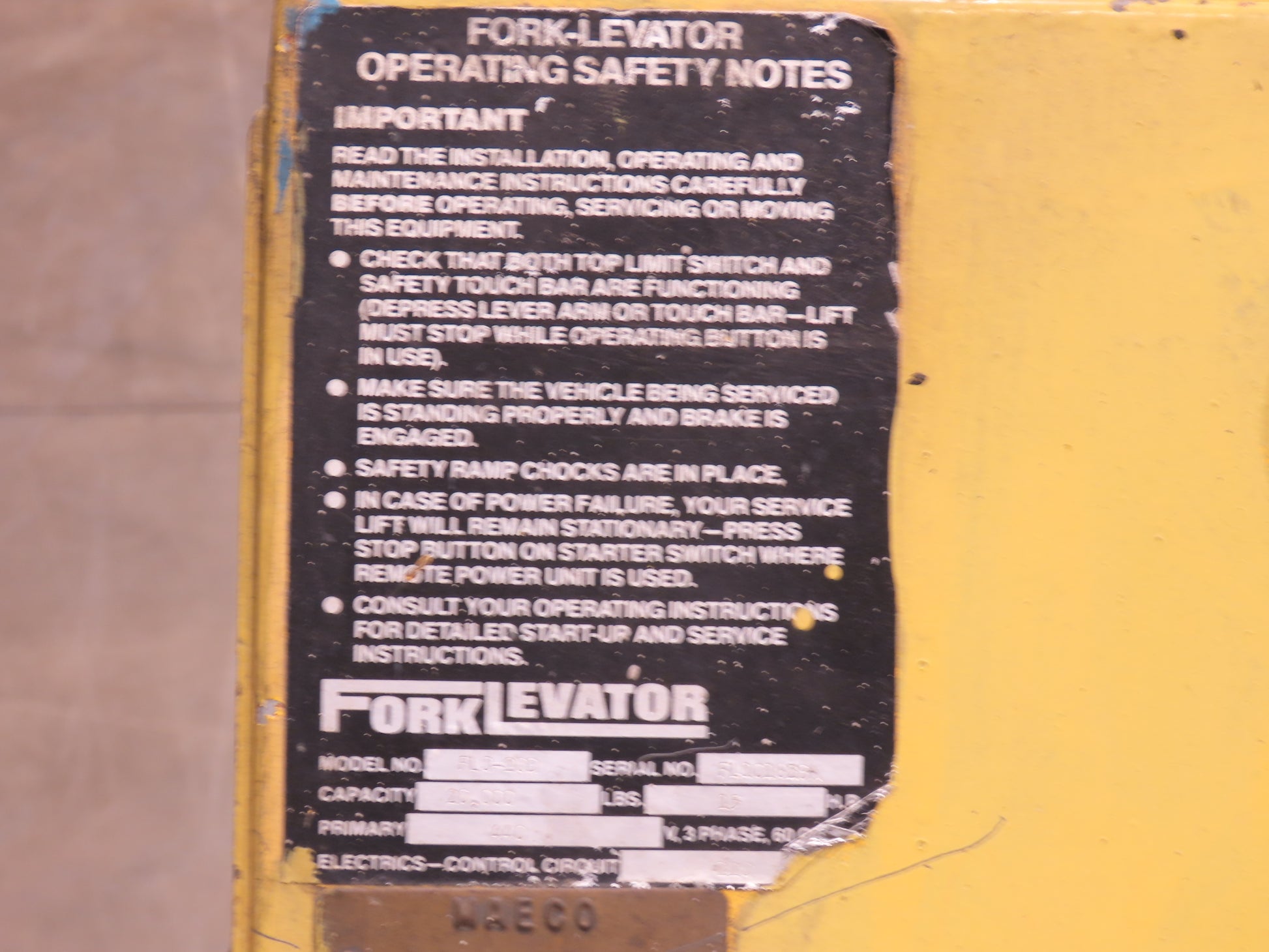 Forklevator Forklift Four Post Mechanical Service Lift 20000lbs 102x60" 3Ph