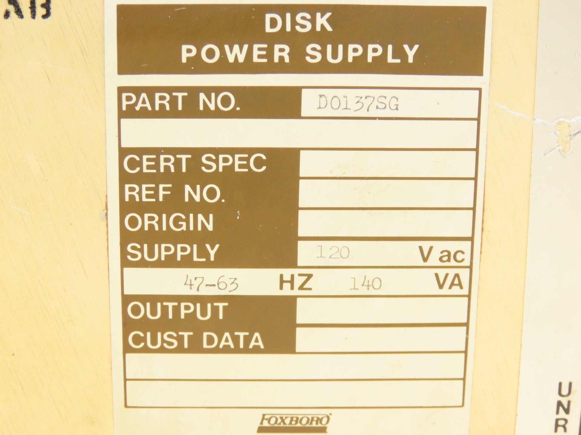 Foxboro D0137SG Disk Power Supply +24 +5 -5 VDC Output 120VAC Input