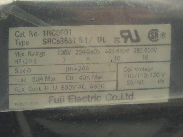 Fuji Electric SRCA3631-5-1 Motor Starter Contactor 10HP 3 Ph Size 0 120V Coil