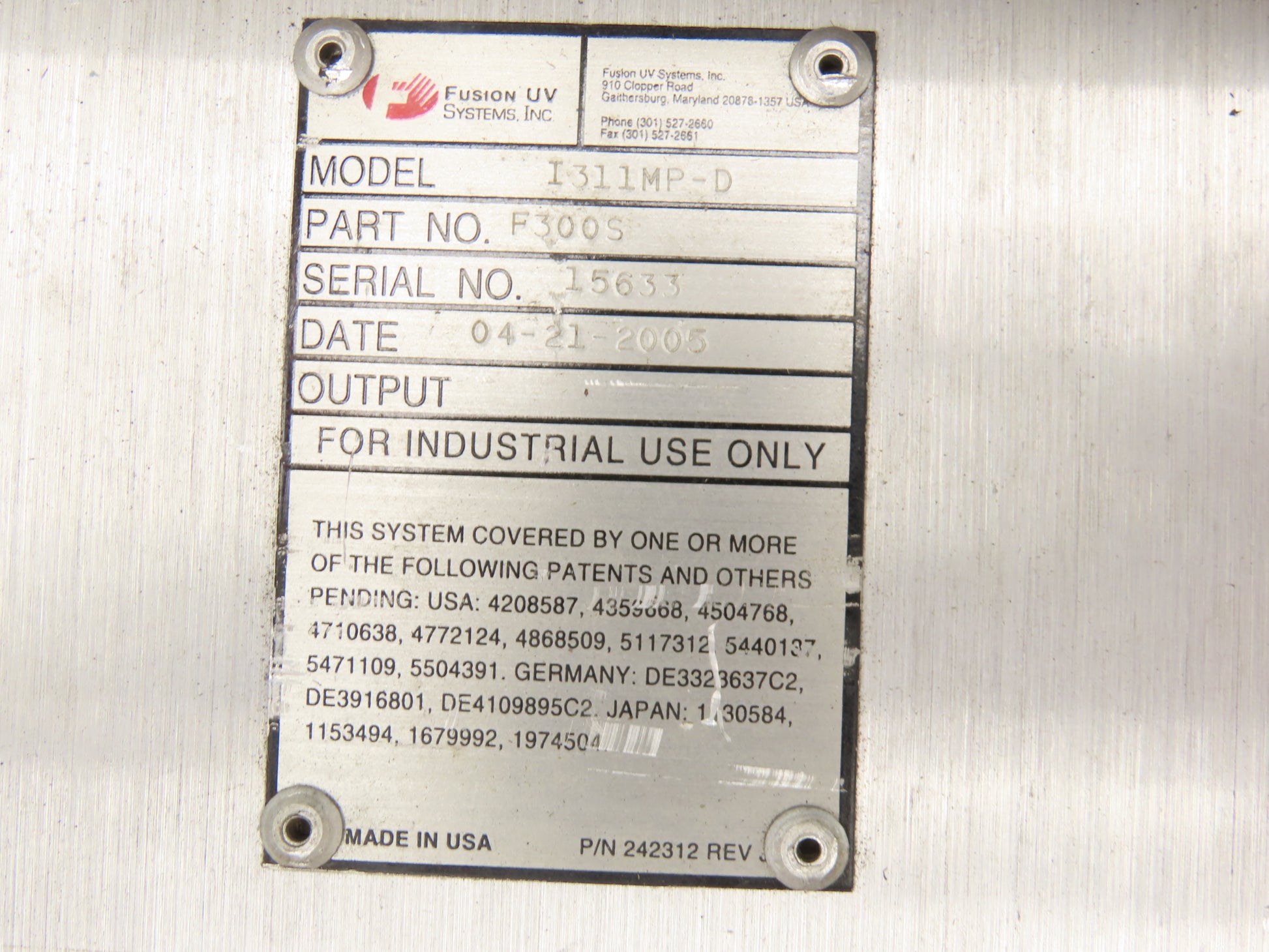 Fusion UV Systems I311MP-D Ultraviolet Light System Irradiator