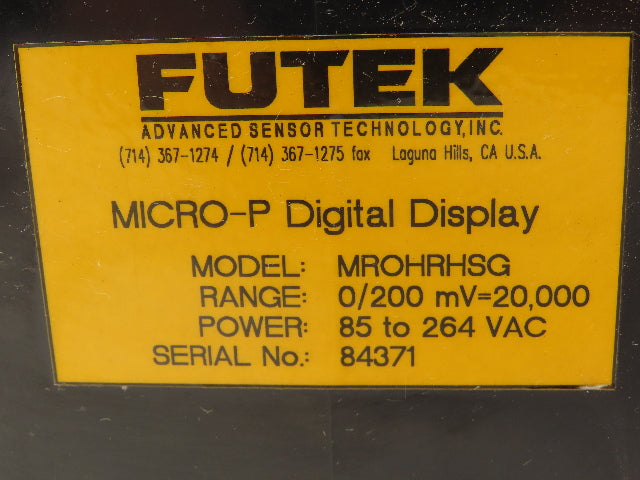 Futek MROHRHSG Micro-P Digital Display 120/240VAC Input 0/200mV=20,000 Range