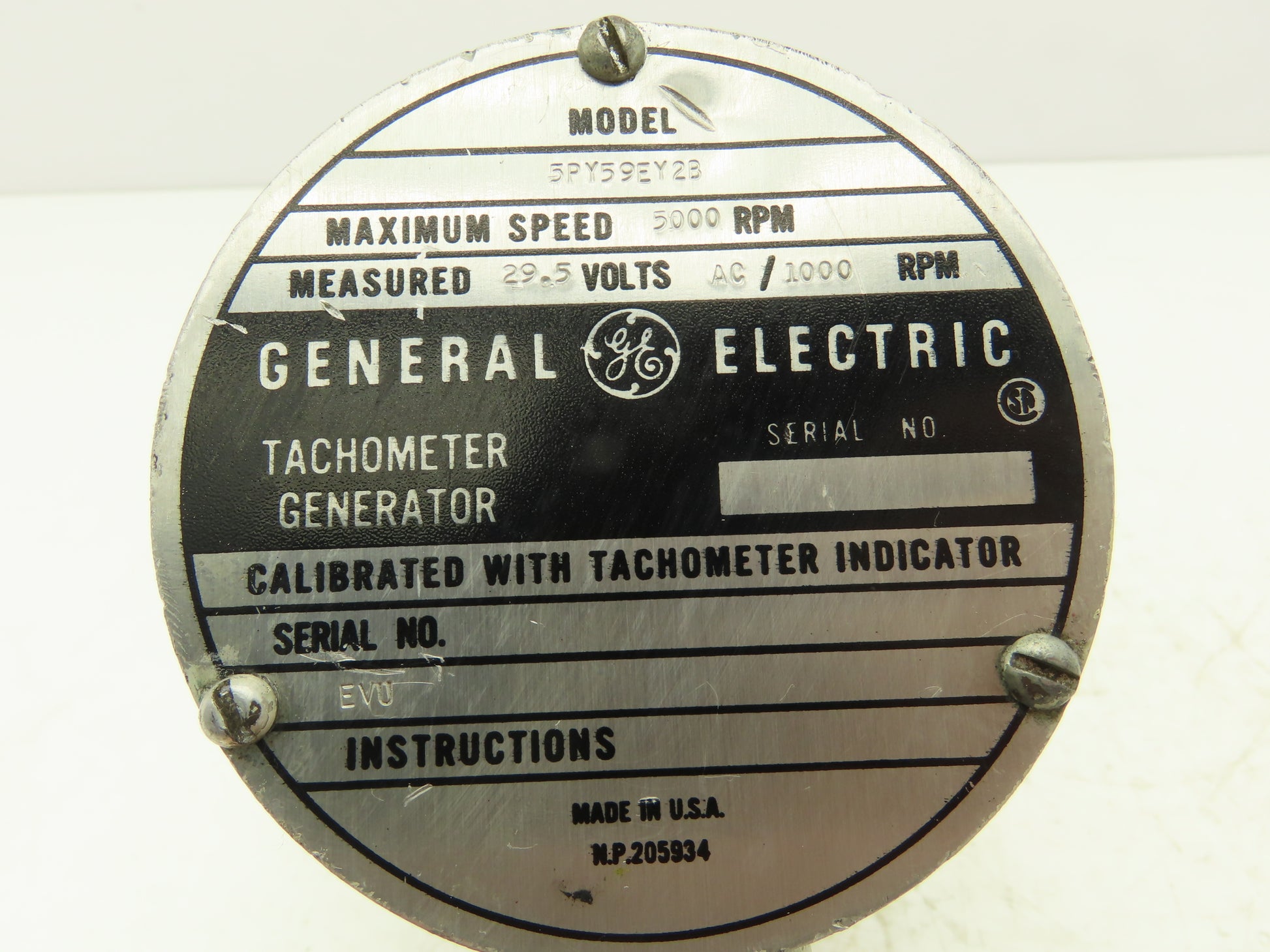 General Electric 5PY59EY2B AC Motor Tachogenerator Tachometer 29.5V