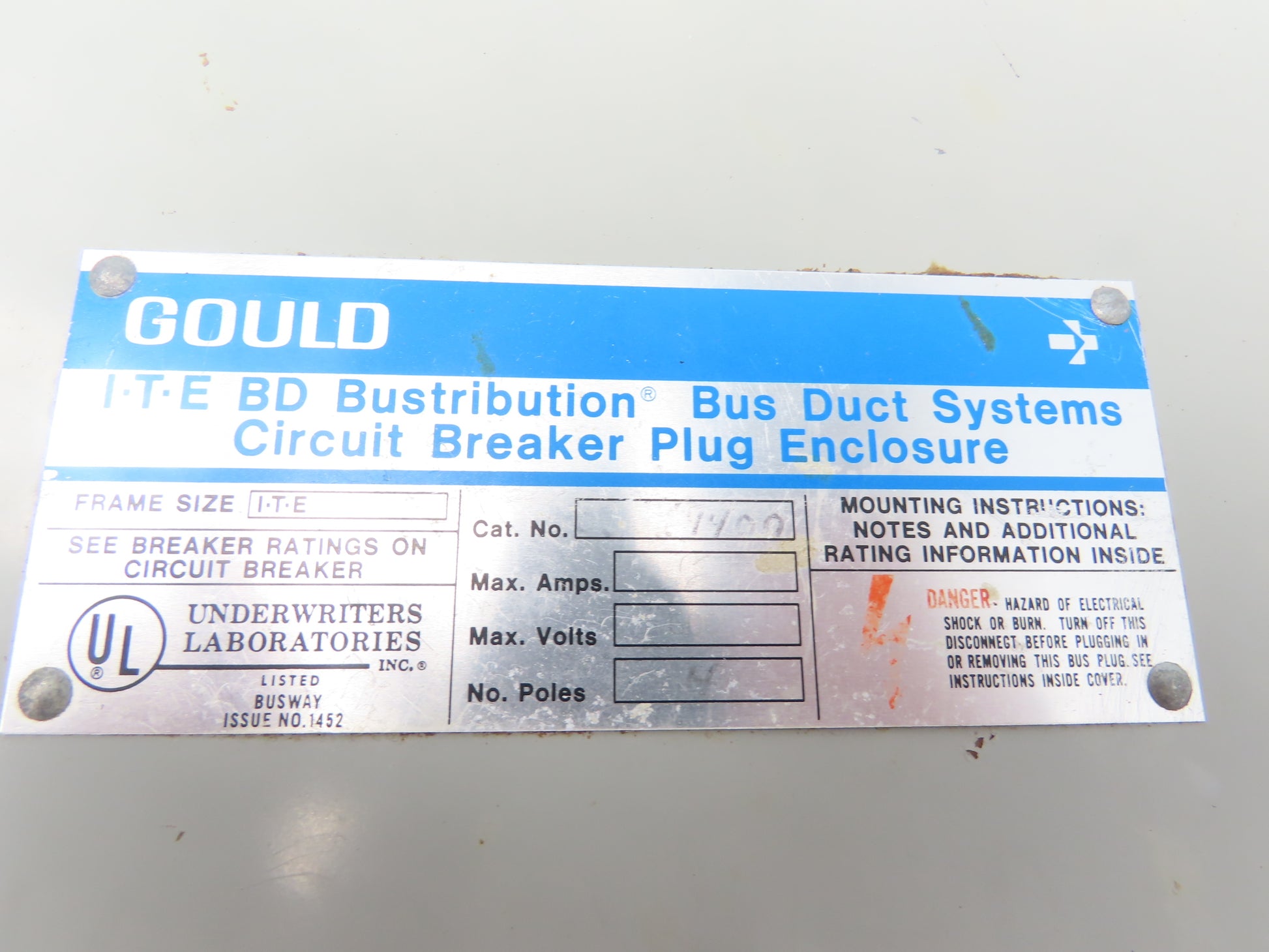 Gould BDJK4400 ITE BD Busway Bus Plug Disconnect 400A Breaker 600V 3P