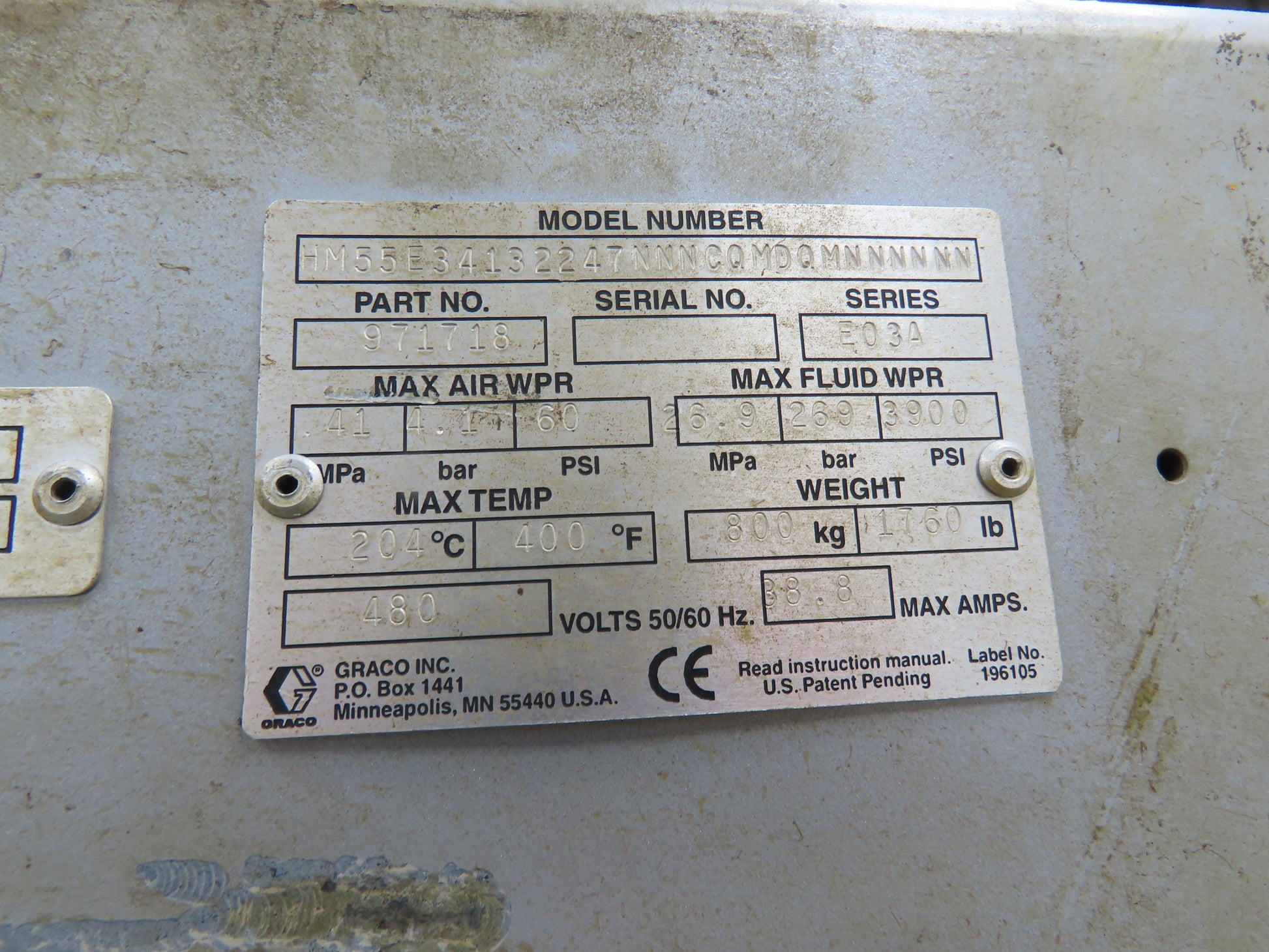 Graco 243895 Thermo-o-flow Hot Melt Drum Unloader 55 Gallon 480V