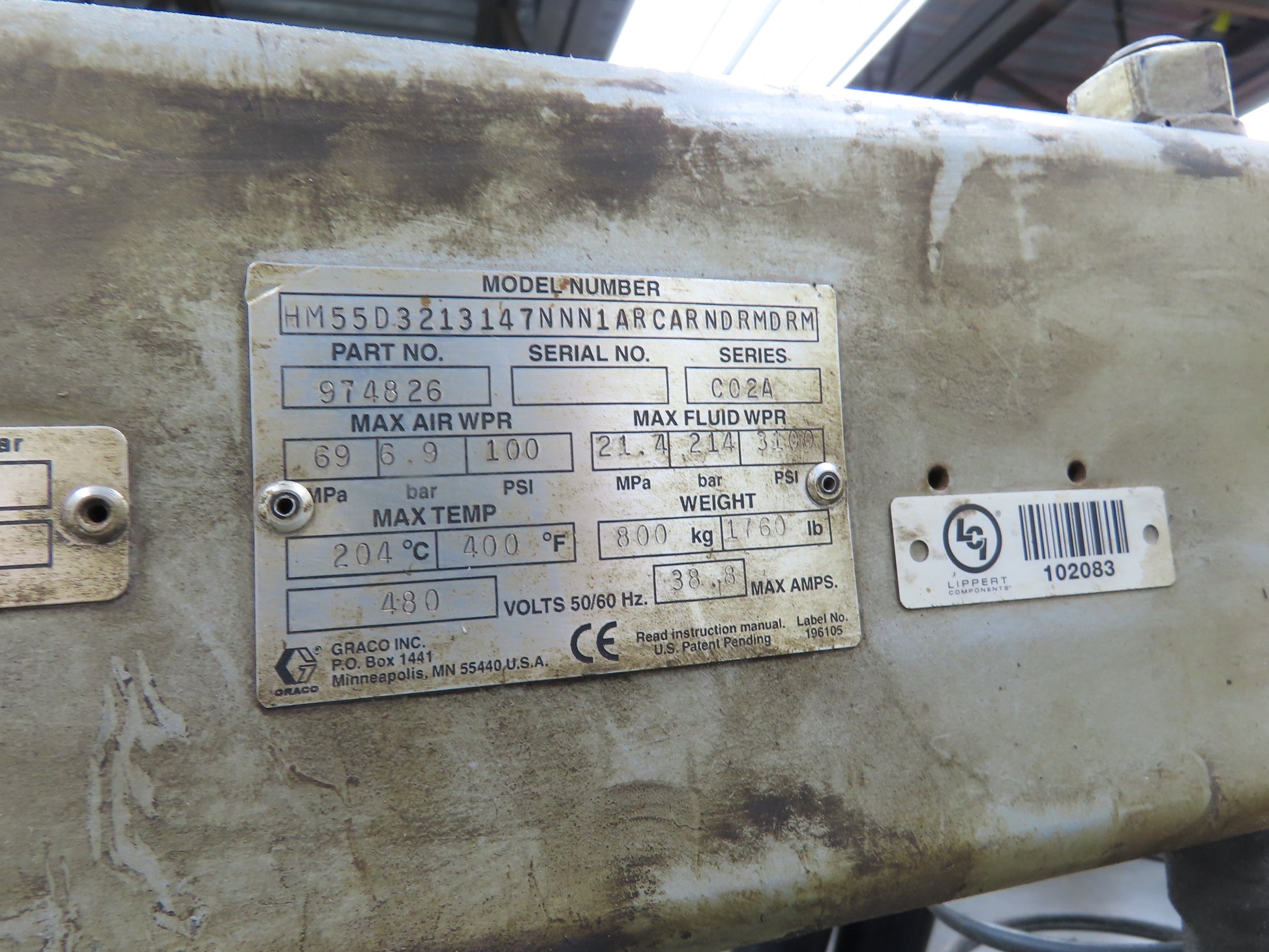 Graco 243895 Thermo-o-flow Hot Melt Drum Unloader 55 Gallon 480V