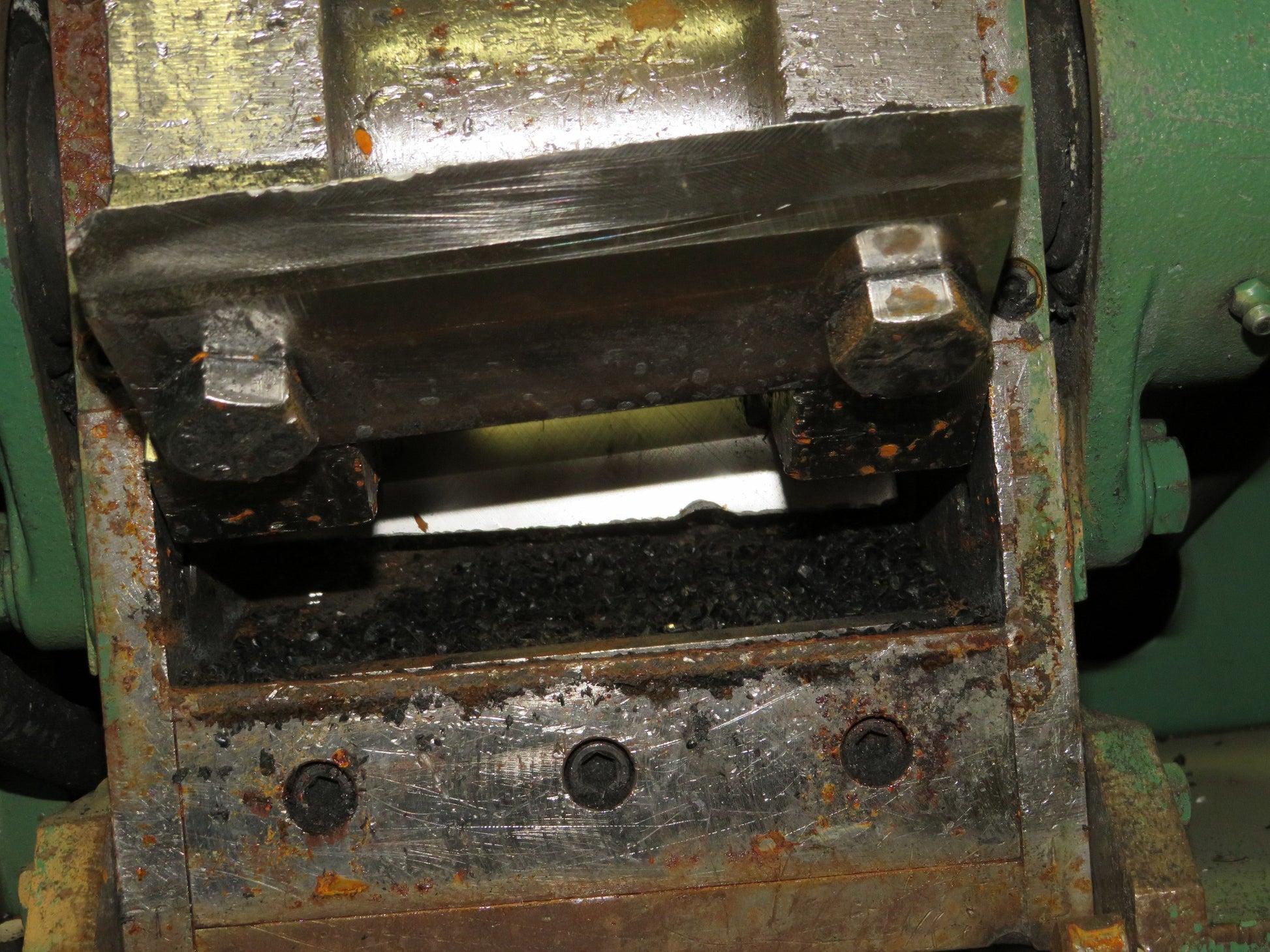 - Infeed 17.5" X 5.75" with a hopper on top that has a 20" hole on the side