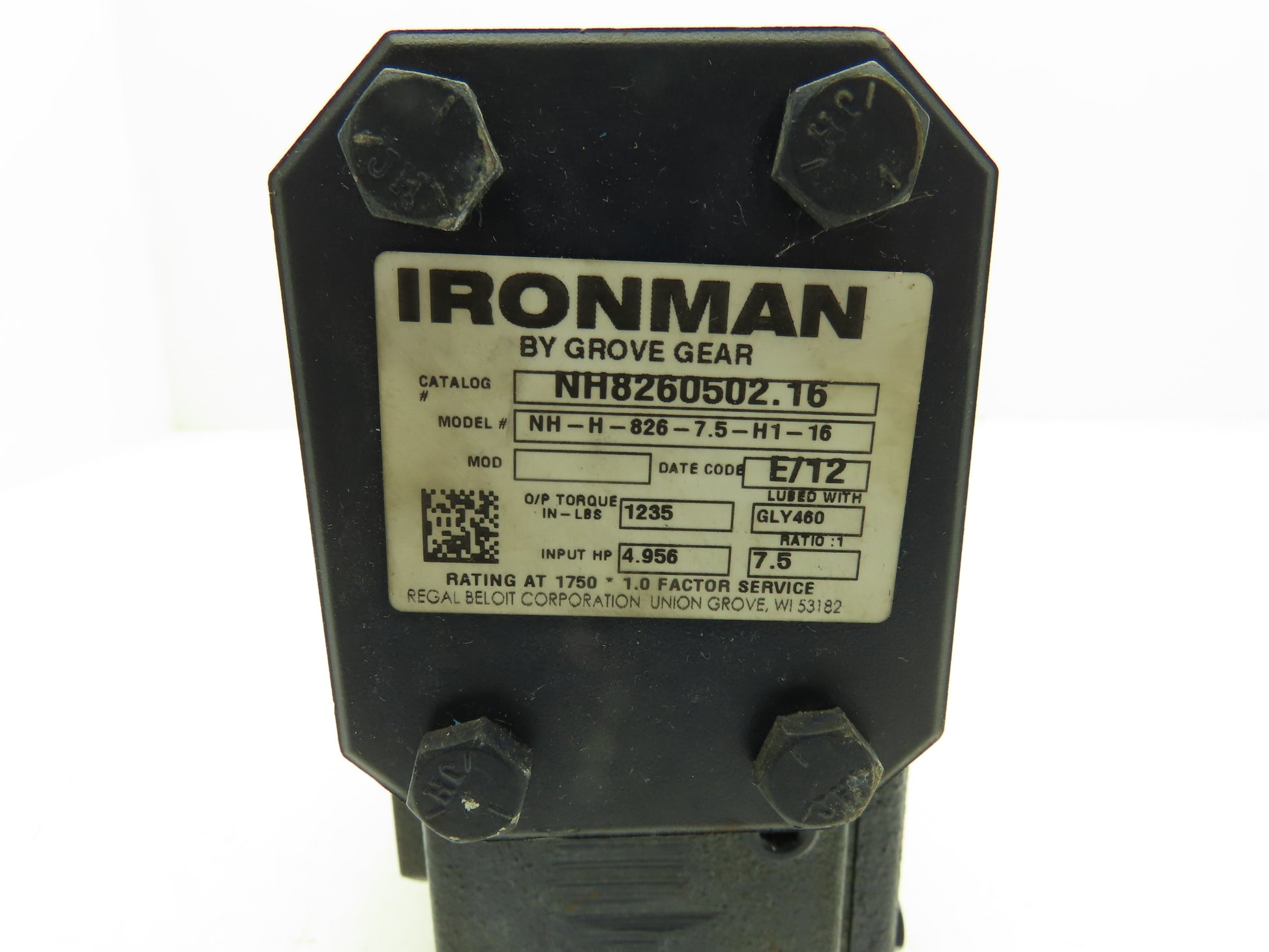 Grove Gear Ironman NH-H-826-7.5-H1-16 Gearbox 7.5 Ratio 5Hp 233rpm Hollow Shaft