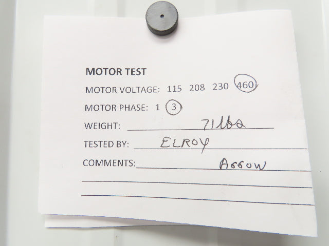- Motor Specs: 3Hp 3450 RPM 230/460V 3PH 184TC