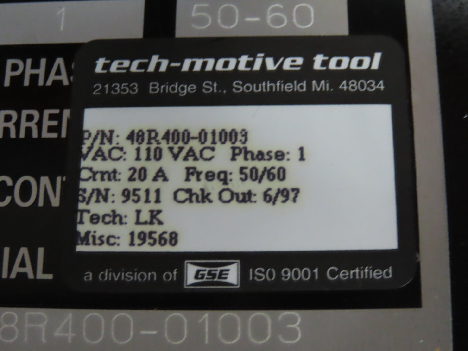 GSE 48R400-01003 Tech-Motive Tool Monitor