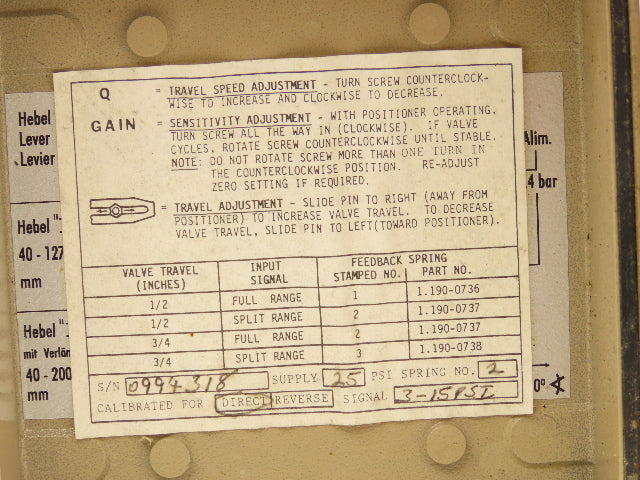 H.D. Baumann 21000 Pneumatic Diaphragm Valve Actuator & Positioner