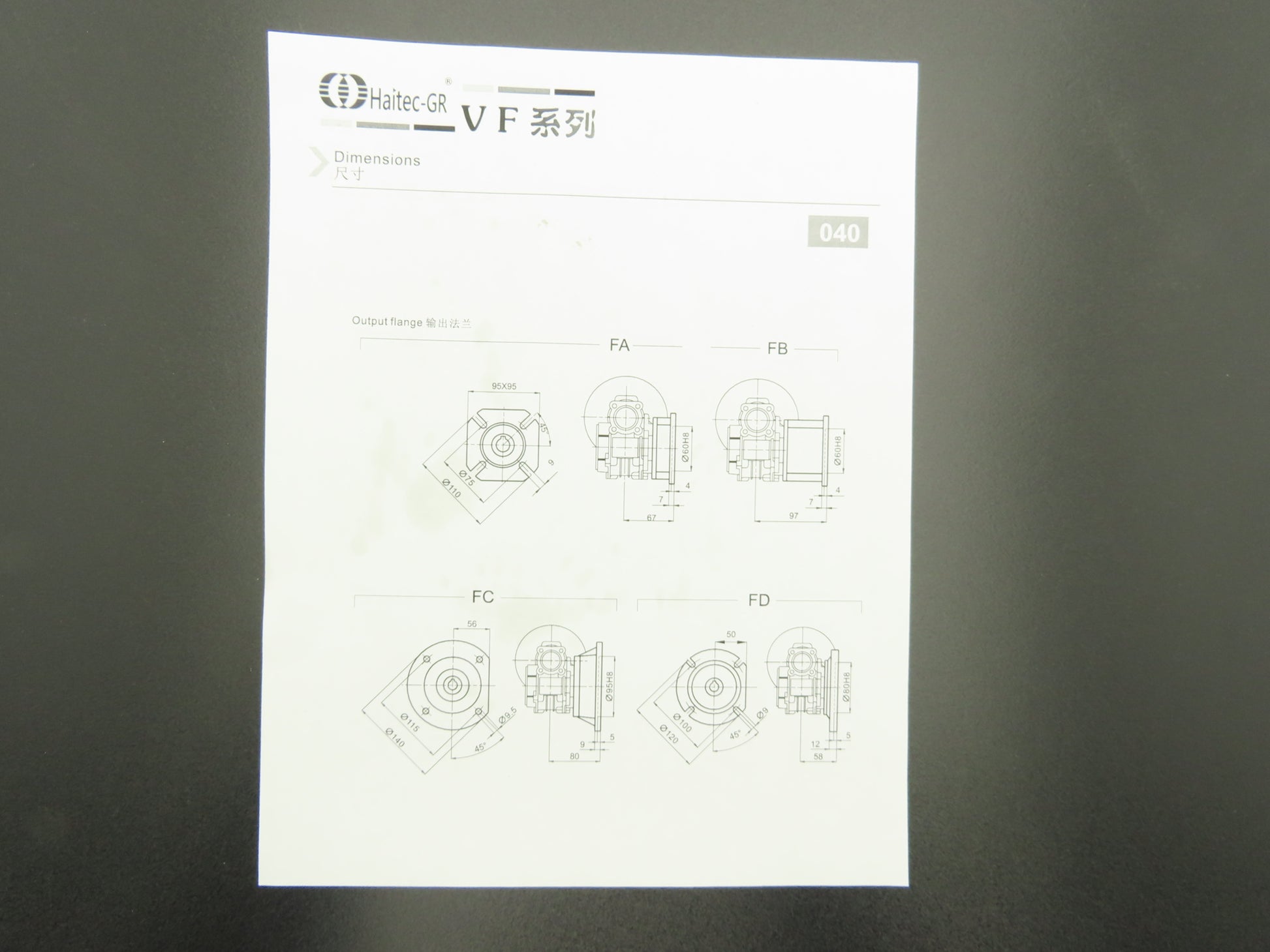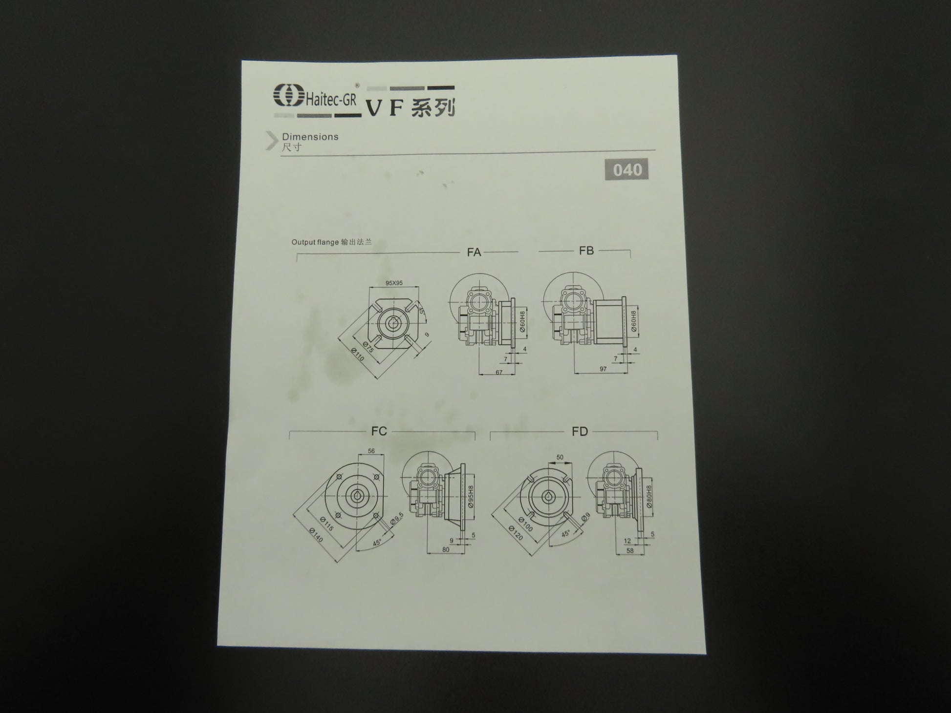 Haitec GR HMVF040 71B5 Worm Gearbox 5:1 Reducer 280 RPM Hollow Shaft IEC 71