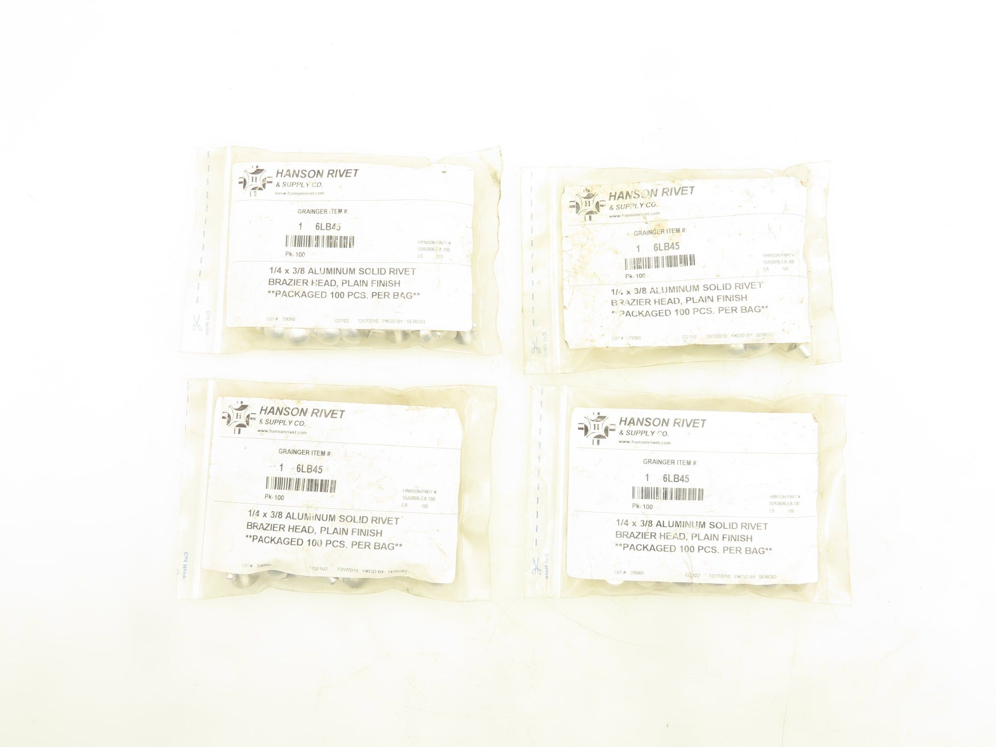 Hanson Grainger 55A0806-EA-100 Aluminum Solid Rivet 1/4 x 3/8" 100 Pack Lot of 4