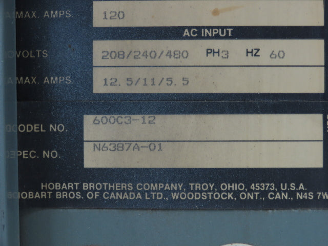 Hobart 600C3-12 Accu-Charger 24V Forklift Battery 451-600Ah 208/240/480V 3Ph