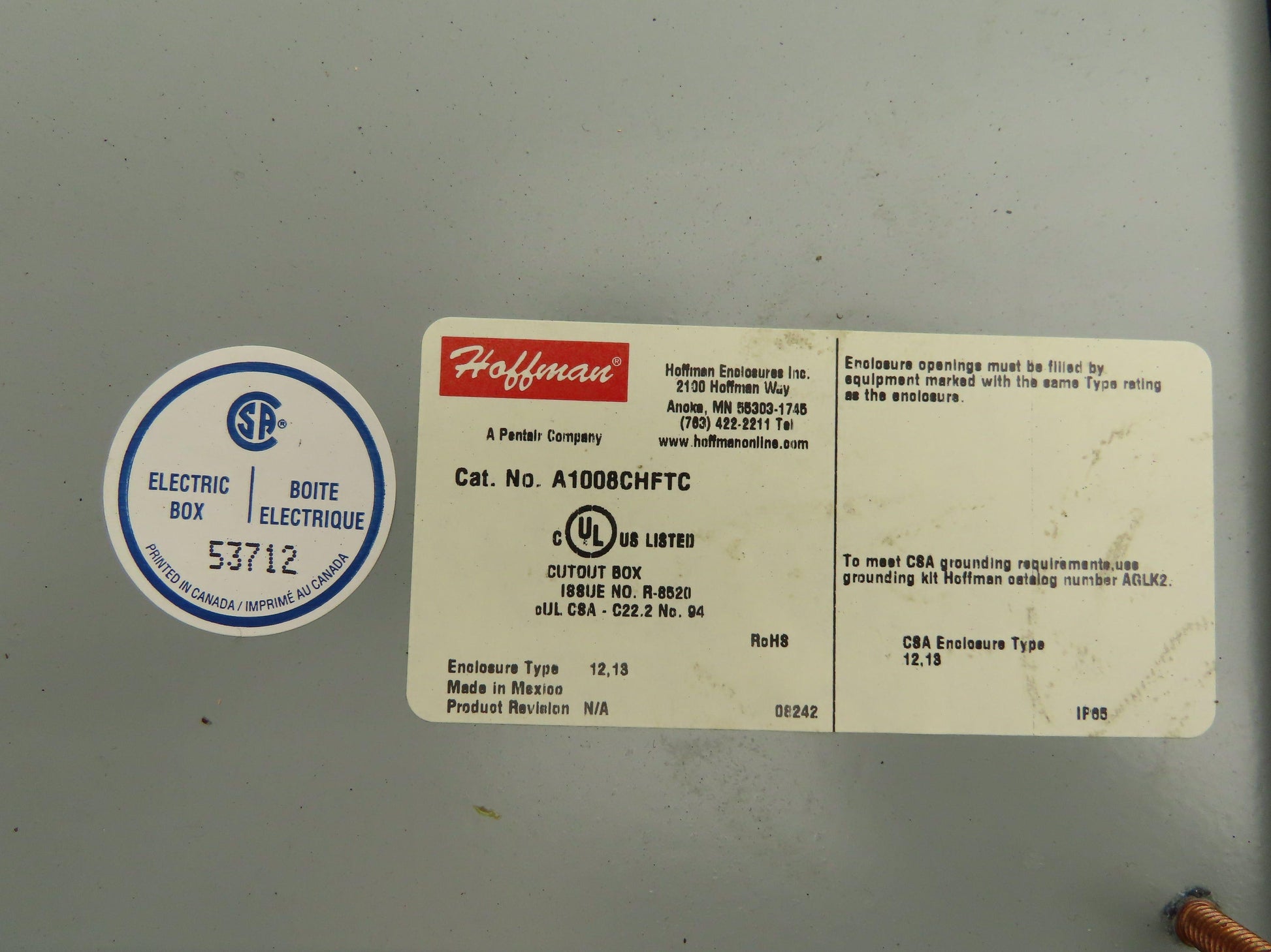 Hoffman A1008CHFTC Electrical Enclosure Box 10x8x4" Wall Mount Terminal Blocks