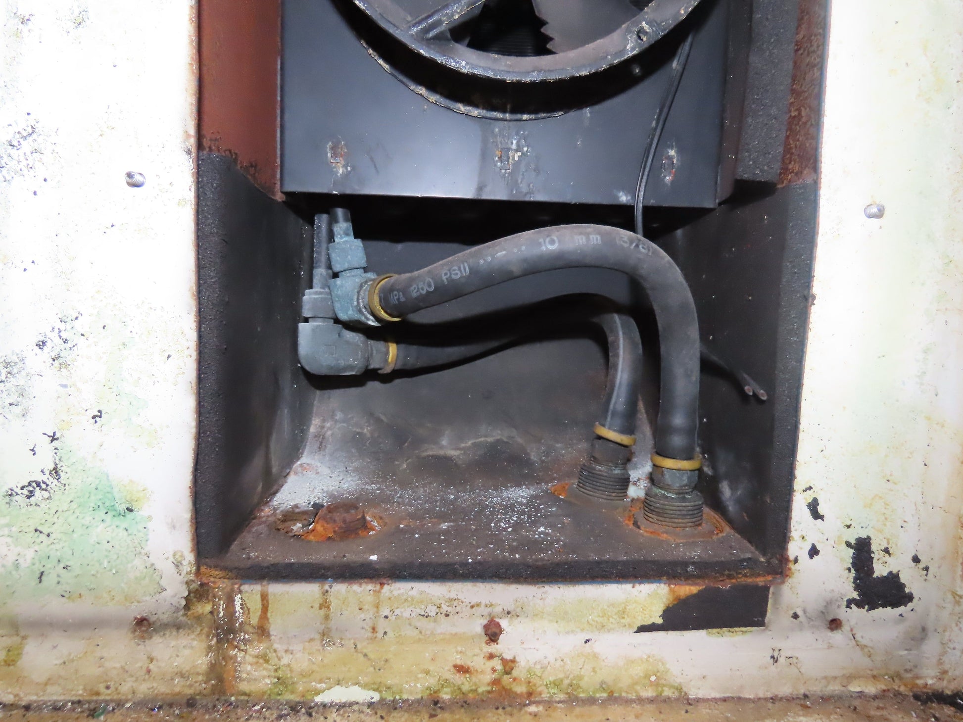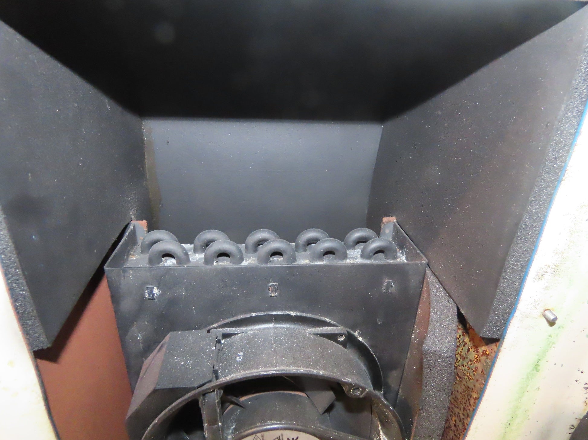 - Left side of cabinet has an 18x8" radiator that appears to be in good condition.