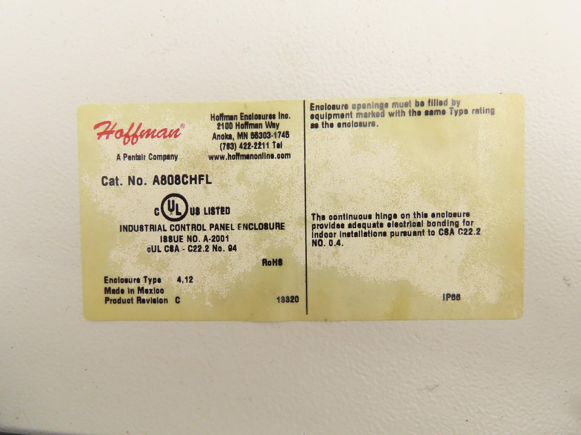 Hoffman A808CHFL Electrical Enclosure