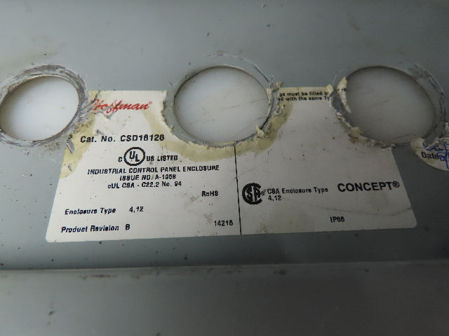 Hoffman Concept 16x12x6" Electrical Enclosure Steel Backpanel JIC Box NEMA 12