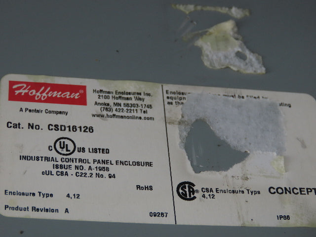 Hoffman CSD16126 Electrical JIC Box Enclosure 16x12x6"