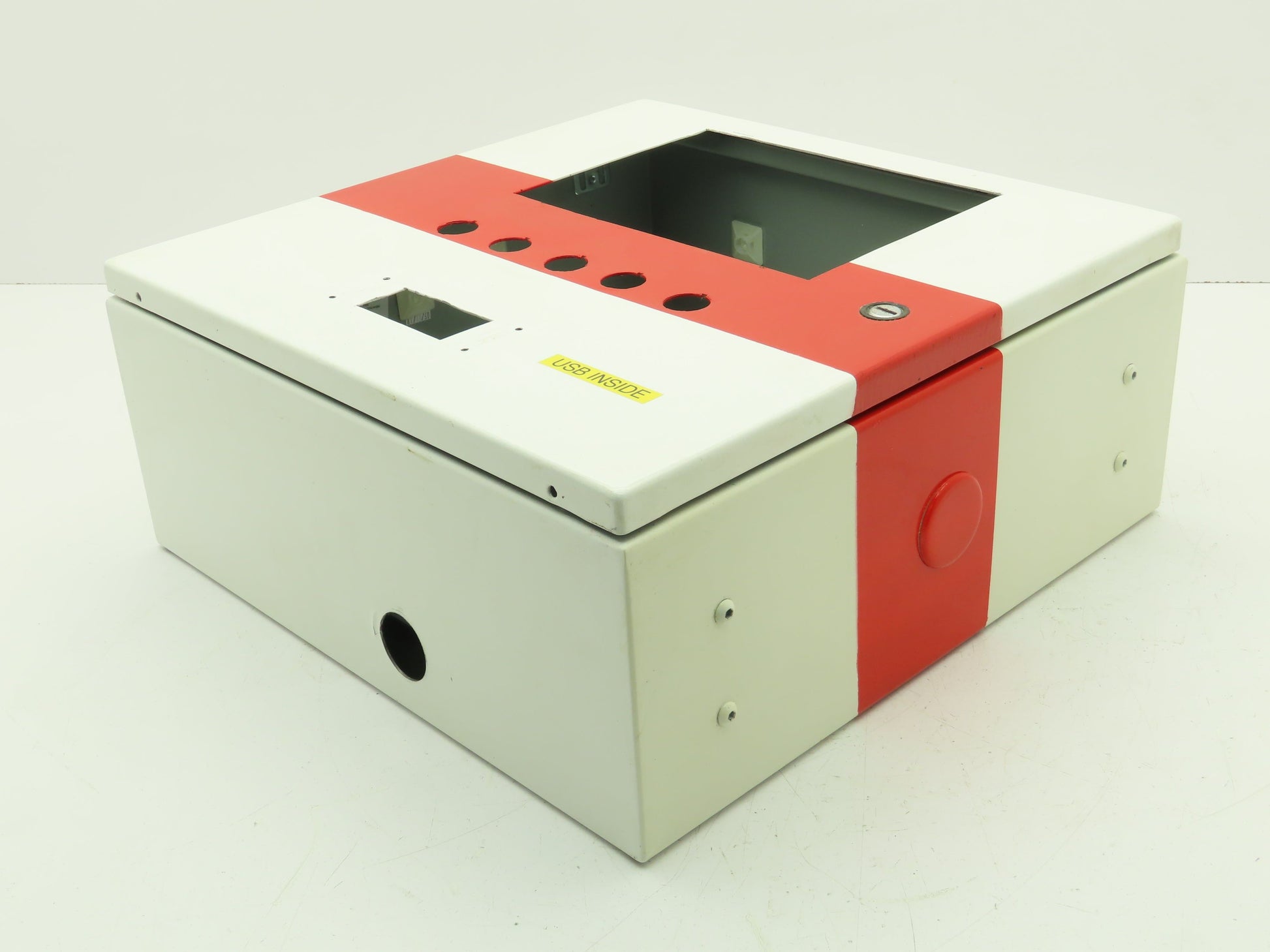 - Had a panel view in the door. Has a bunch of knockouts. See photos.