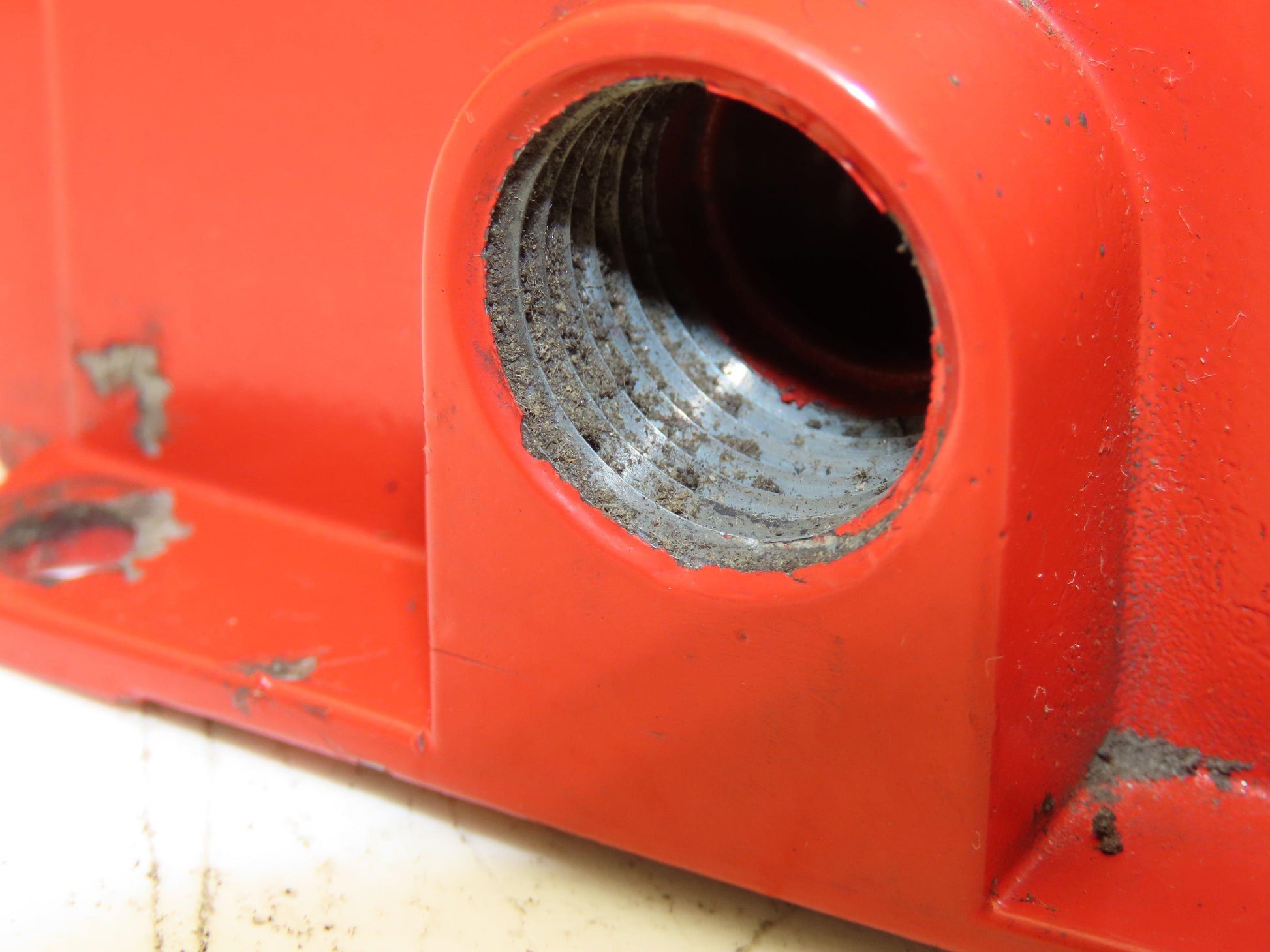 - One mounting hole broken off.