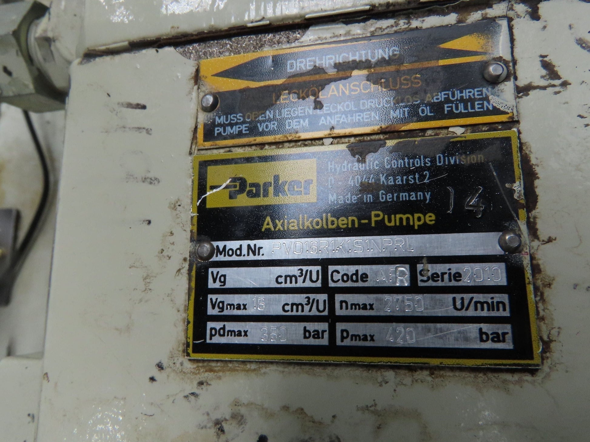 - Pump Brand & Model Number: Hydraulik Ring PVD50E100B1 and Parker PV016R1K1S1NPRI