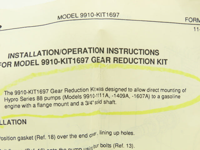 Hypro Pump 9910-KIT1697 2:1 Gear Reducer Kit for Series 88 Pump
