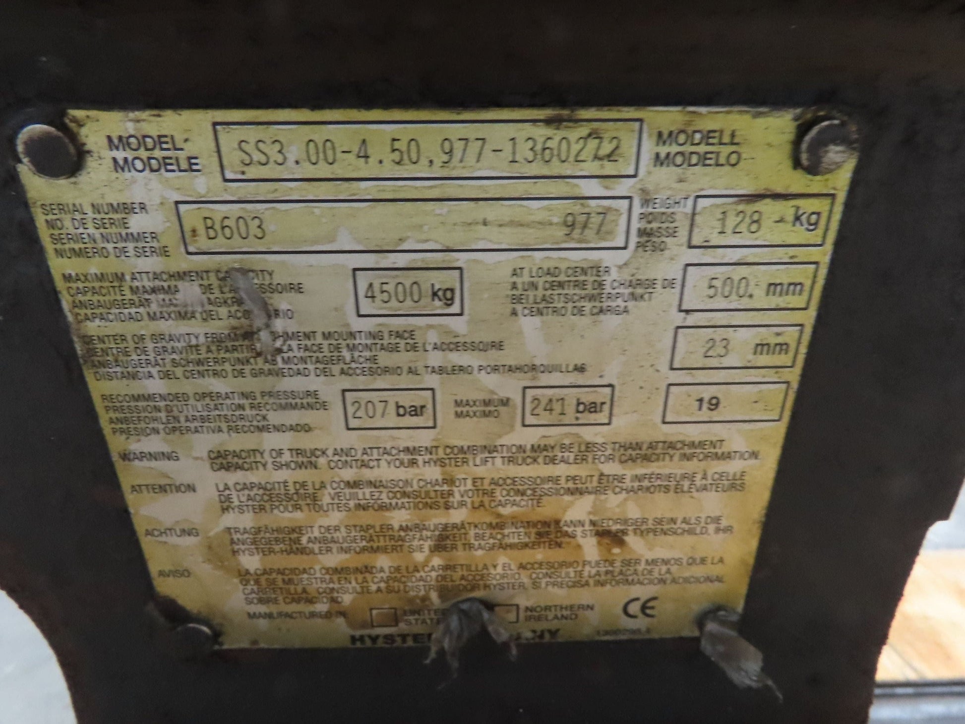 Hyster Forklift Class 3 SideShift Attachment 20" x 38.5" Wide 9900lbs 4500kg