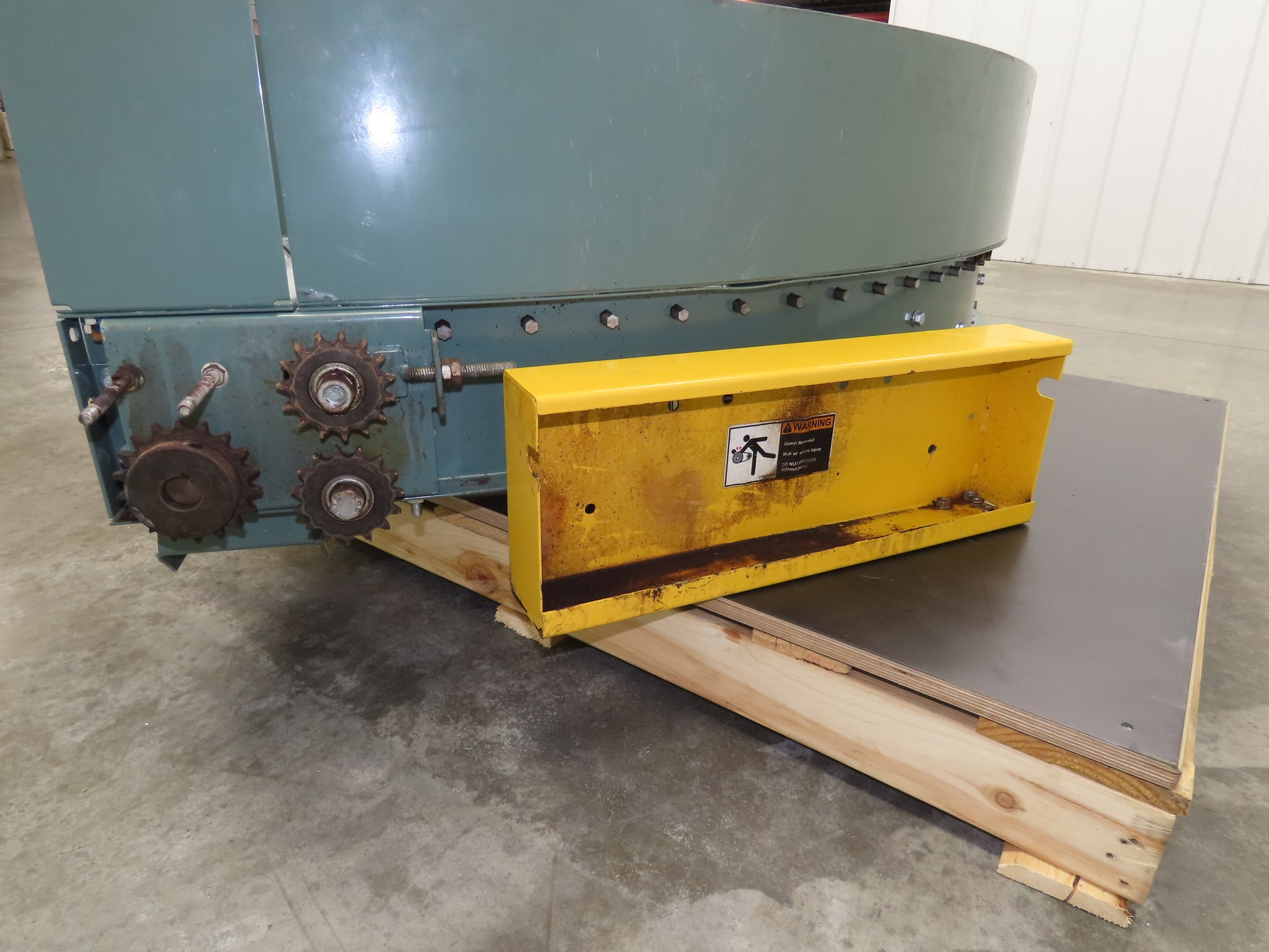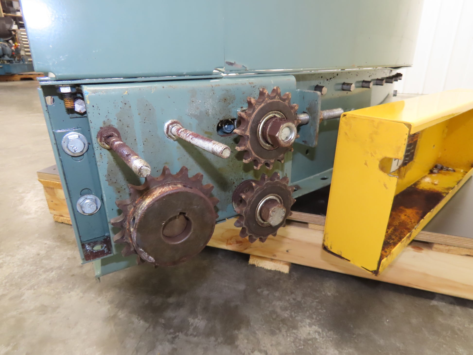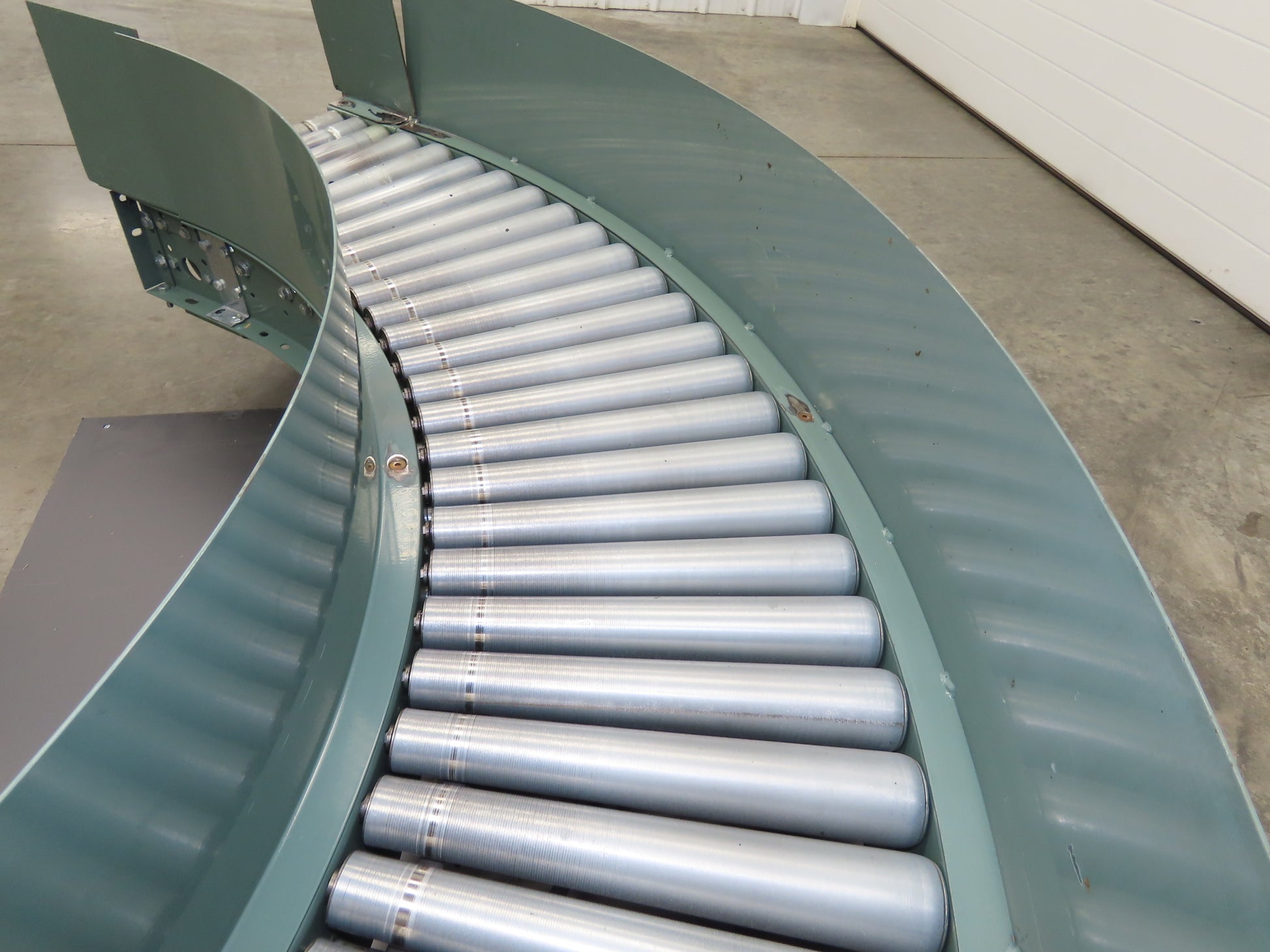 - Set-up Configuration: V-Belt driven rollers section connects to an existing conveyor with a chain and sprocket slave drive. Sprocket is on right side of conveyor.