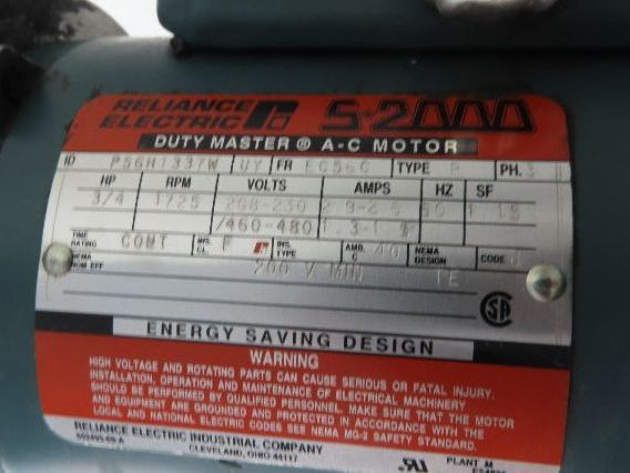 - Motor Specs: 3/4Hp 1725rpm 208-230/460V 3PH (Wired 230V)