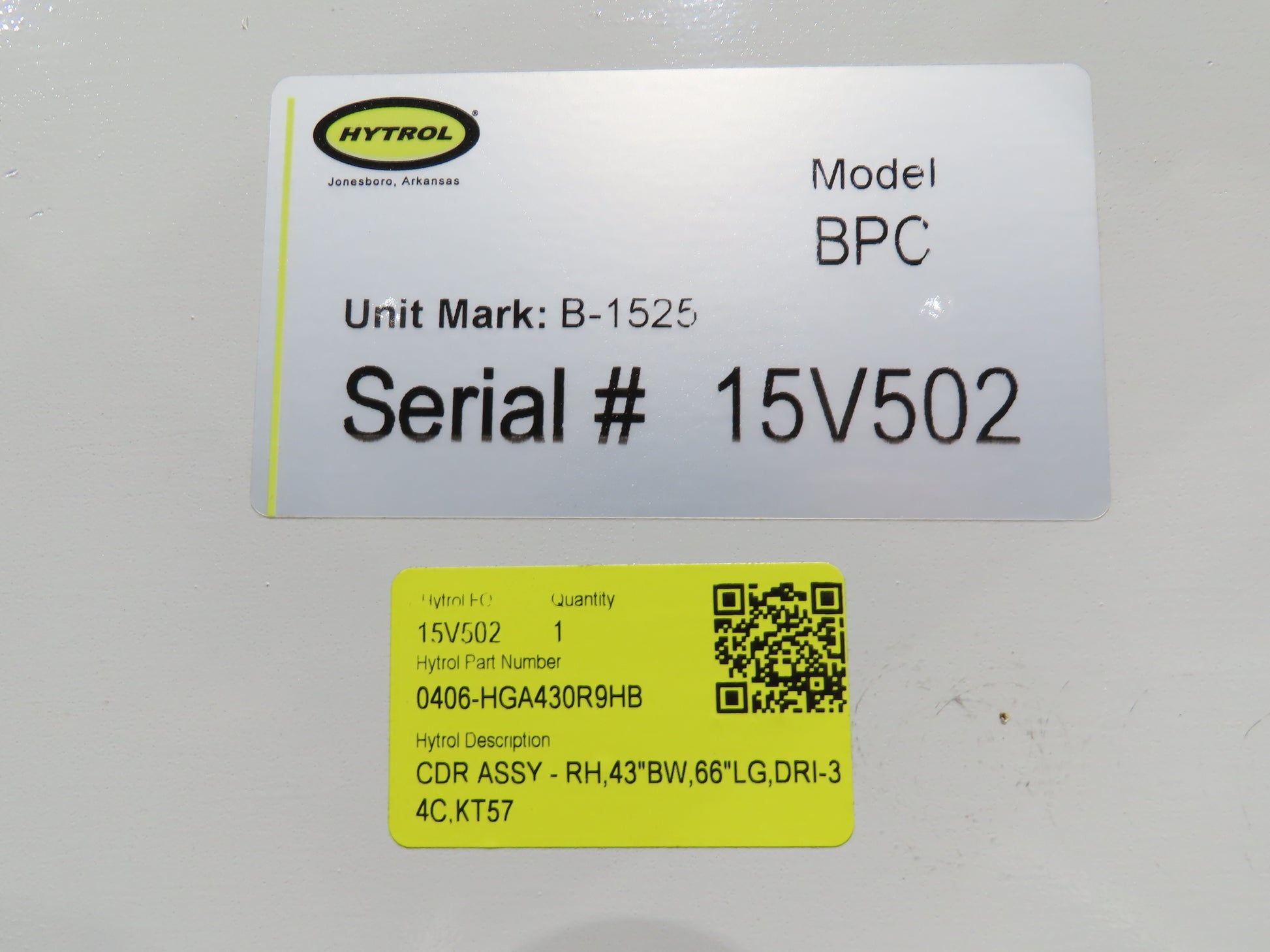 - Hytrol Model BPC. Serial 15V502