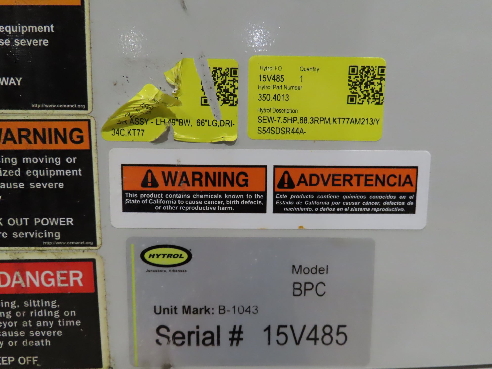 - Hytrol Model BPC. Serial 15V485